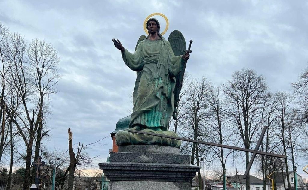 На площі у зруйнованій рашистами Бородянці дивом уцілів пам’ятник Архангелу Михаїлу. Про…