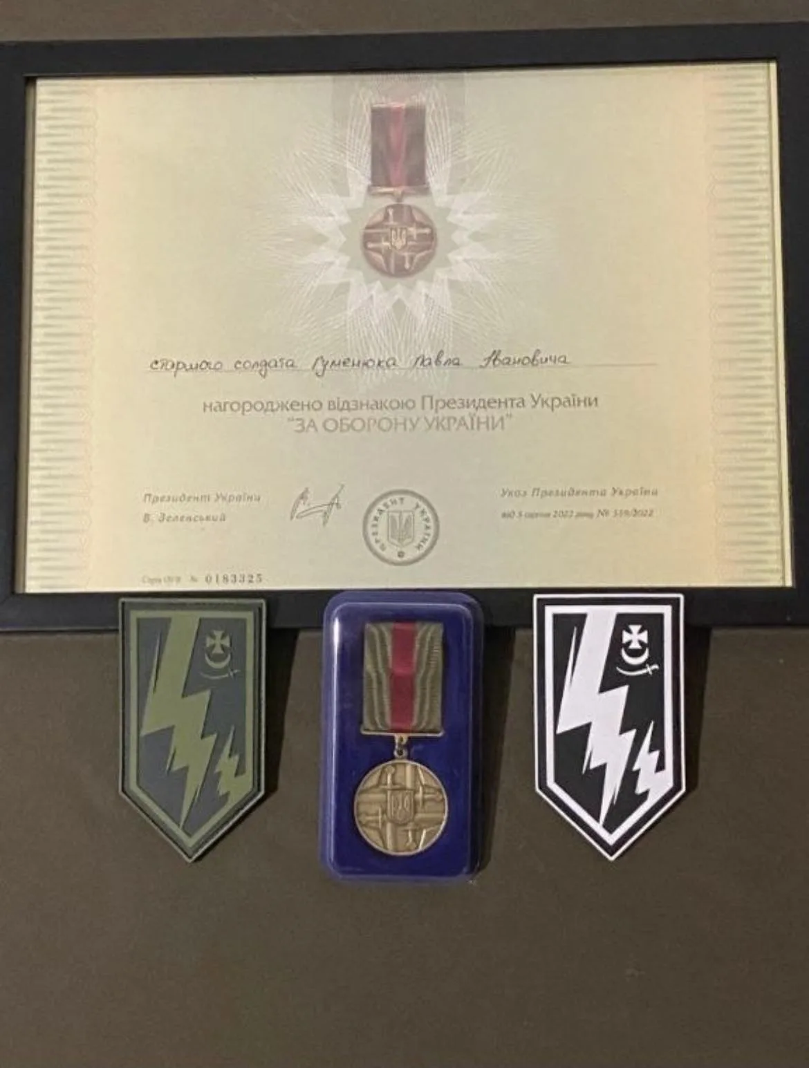 Тим часом його батько, Павло Гуменюк, цими днями був нагороджений відзнакою Президента України “За оборону України”.