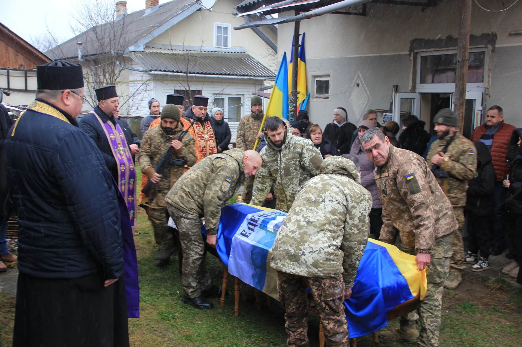 Щоб віддати останню шану полеглому воїнові, до його батьківської оселі зібралися рідні, друзі, сусіди, побратими та мешканці громади. Біля дому відбулася панахида.