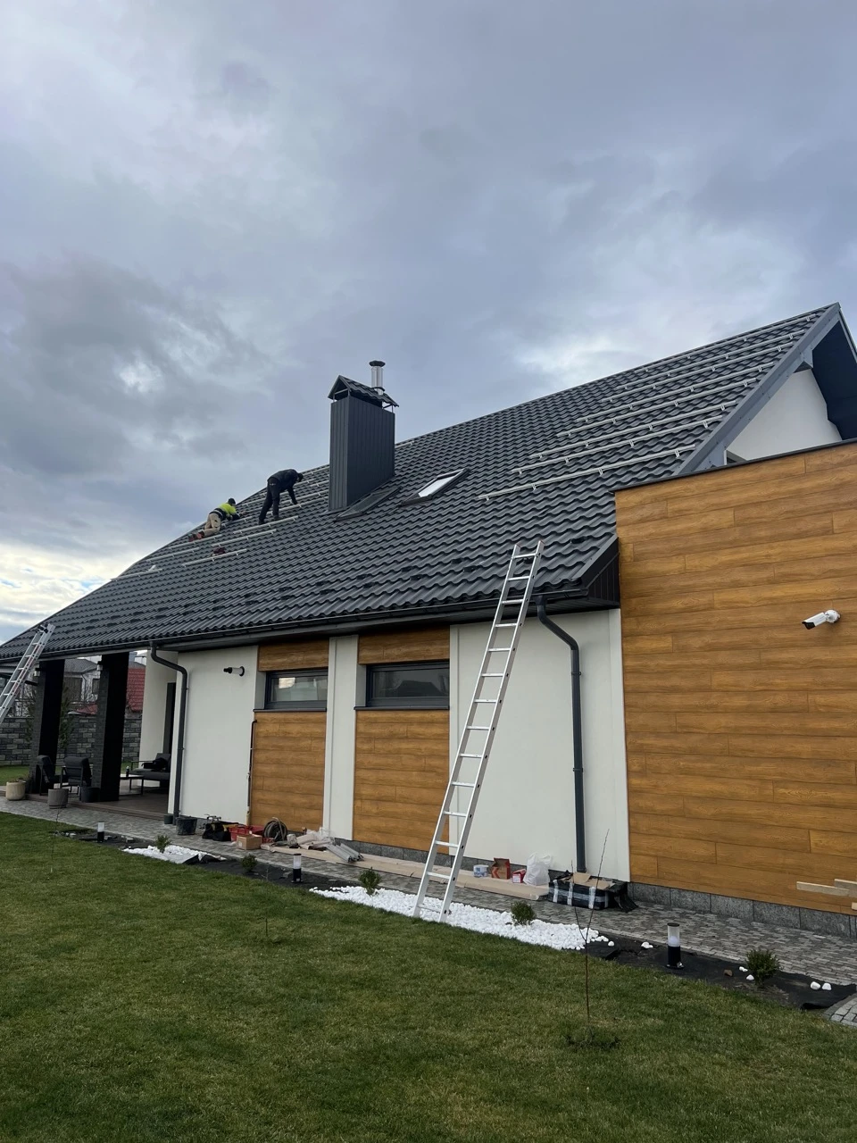 Це фізично найскладніша частина. Встановлення кріплень на дах, підйом панелей (кожна важить 20-25 кг), прокладка кабелів, монтаж інвертора, підключення до електромережі будинку. Роботи ведуться на висоті, тому потрібна кваліфікована бригада з допуском до високотних робіт та спеціалізованим обладнанням (драбини, страхувальні системи).