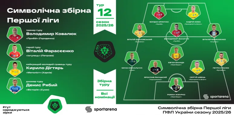 Sport Arena називає символічну збірну чергового туру VBET Першої ліги сезону 2025/26.