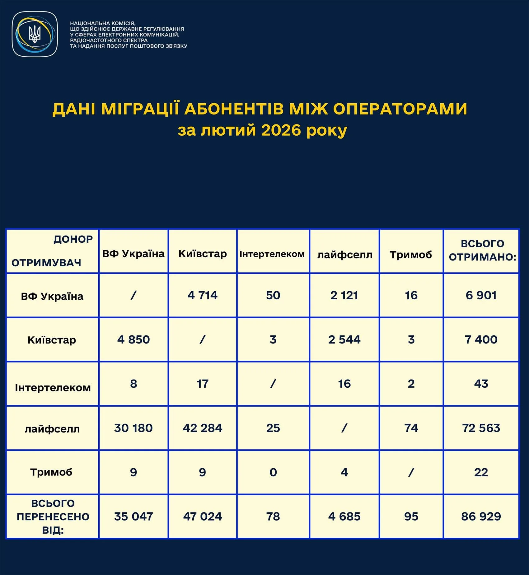 Українці масово переходять з операторів Vodafone та Київстар на lifecell: у лютому «Lifecell» отримав +72 563 абоненти, «Vodafone» втратив – 35 047, «Київстар» – 47 024.