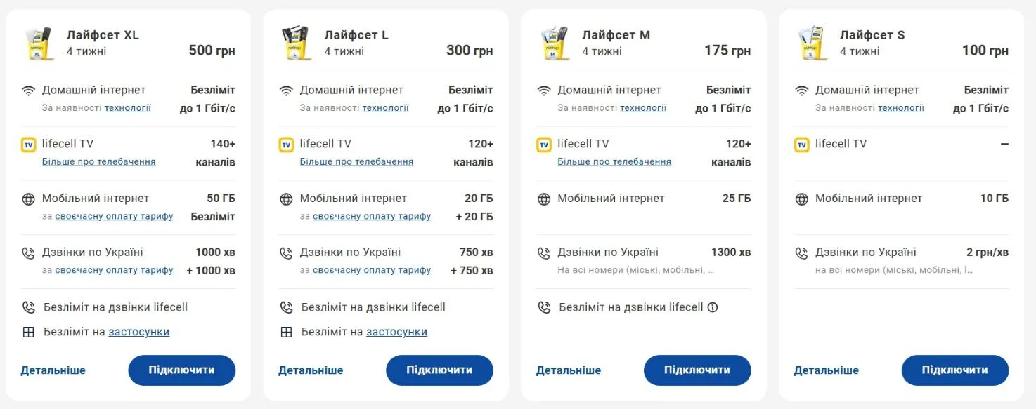 Найдоступніший загальний тариф – «Все разом Легкий». Його вартість – від 290 грн на місяць.