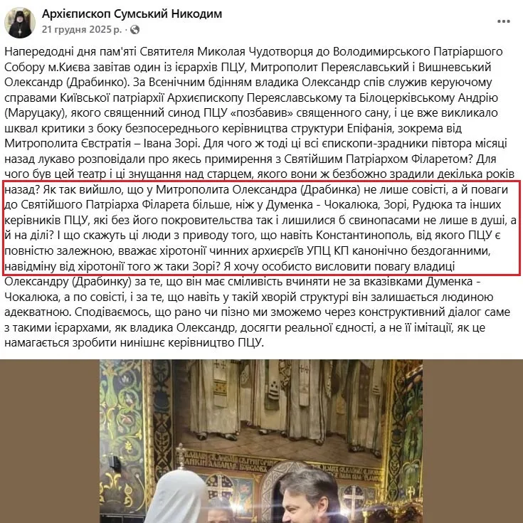 скріншот: архієпископ Сумський і Охтирський Никодим/Facebook