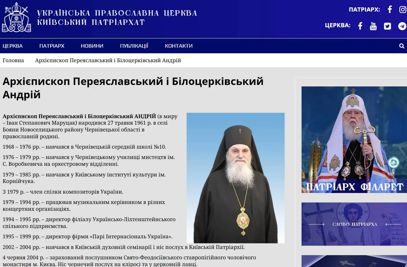 скріншот із сайту УПЦ КП