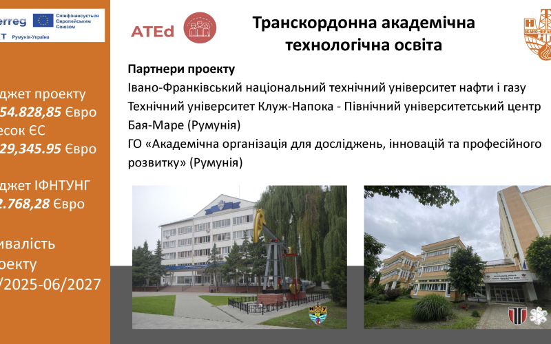 В Івано-Франківському національному технічному університеті нафти і газу, з нагоди Дня машинобудівника, відбулася презентація міжнародного грантового проєкту ROUA00183 «Транскордонна академічна технологічна освіта» (ATEd).