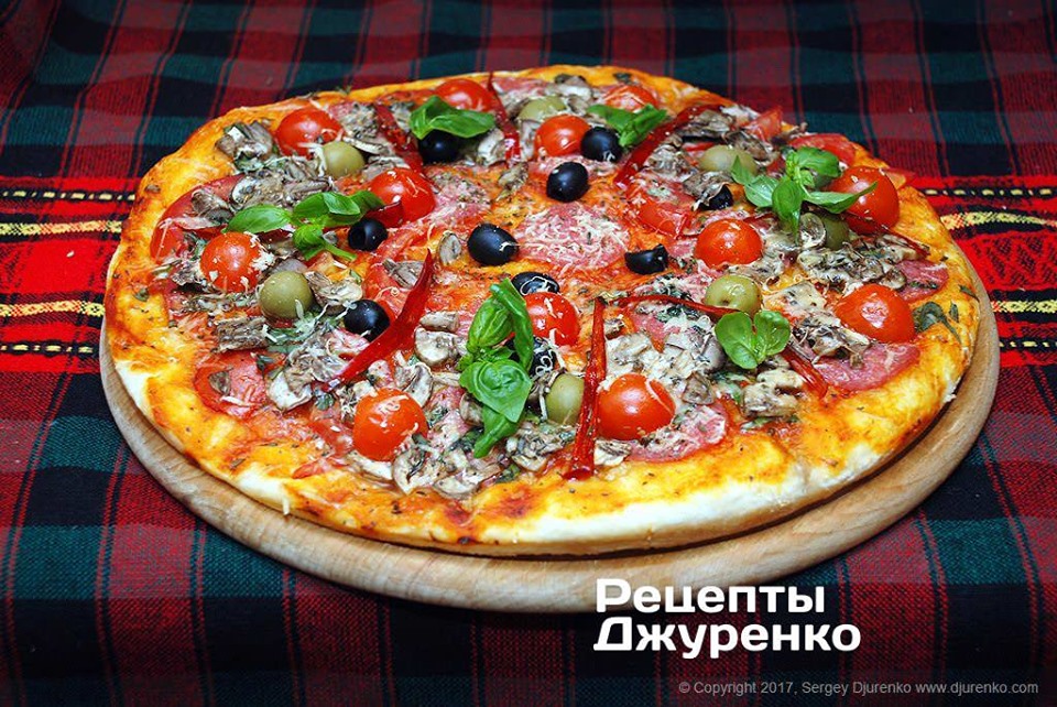 Чтобы приготовить вкусную домашнюю пиццу в первую очередь вам понадобится отменное тесто для пиццы, которым вы удивите даже пиццайоло. Приготовив тесто и закупив нужные продукты, вы можете приступать готовить домашнюю пиццу ассорти по рецепту Джуренко. Это универсальный рецепт, благодаря которому пицца выйдет лучше, чем в заведении, а начинка будет на ваш вкус. В своём рецепте Сергей Джуренко делится своими секретами, чтобы пиццы получилась еще лучше.