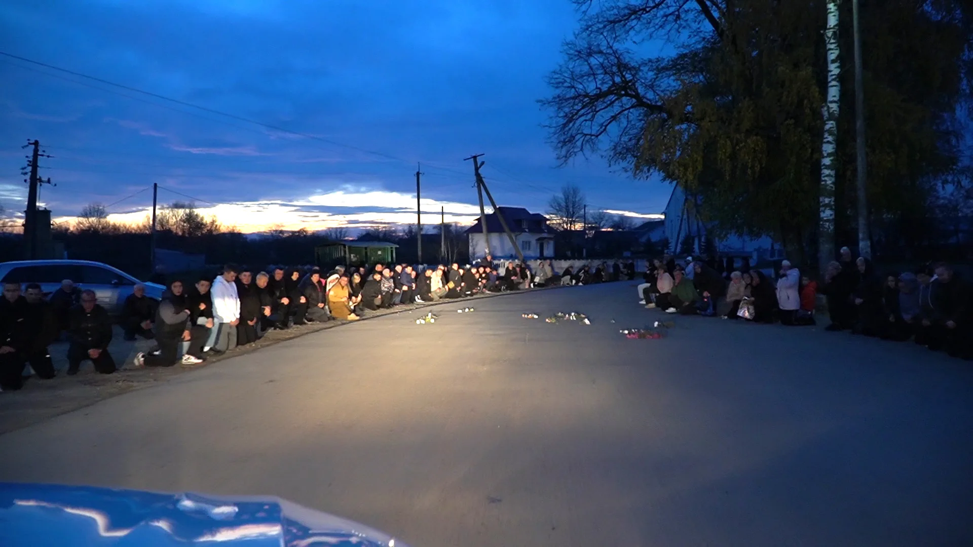 Мешканці громади, стоячи навколішки, «живим» коридором зустріли скорботний кортеж із труною полеглого солдата, встеляючи його останній шлях додому квітами.