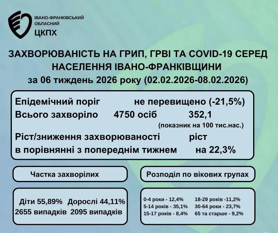 Про це повідомив головний санітарний лікар Прикарпаття Руслан Савчук за підсумками 6-го тижня епідсезону 2025–2026 років, передає Правда.