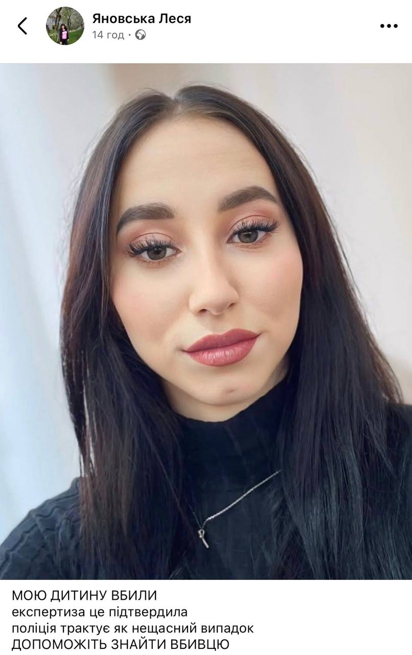 «Мою дитину вбили. Експертиза це підтвердила, але поліція трактує це як нещасний випадок», — написала жінка.