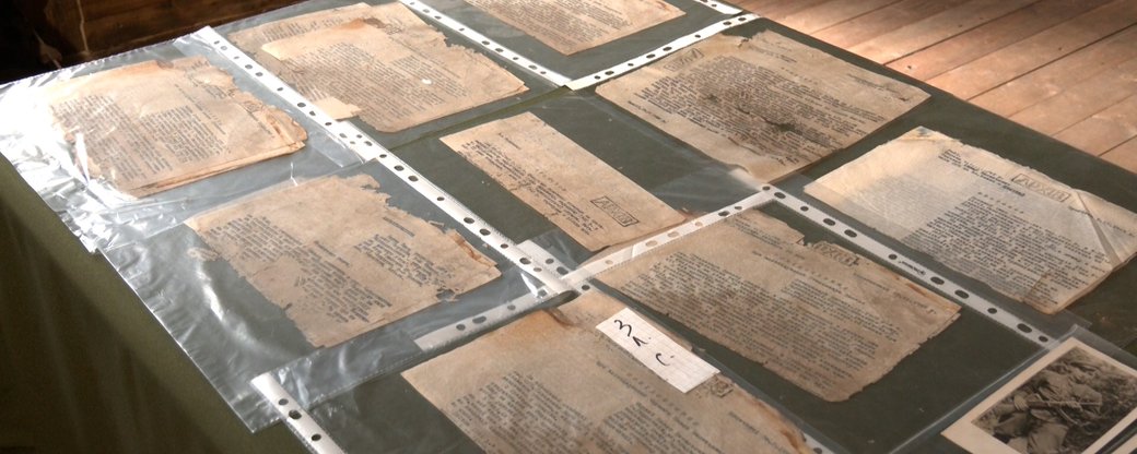 Знайшли документи на Тернопільщині, їх зберігали у бідоні, каже директор музею. Усі папери датовані 1947-1948 роками. Документи служби безпеки ОУН на антикварному аукціоні придбав для музею франківець Олег Капустяк.
