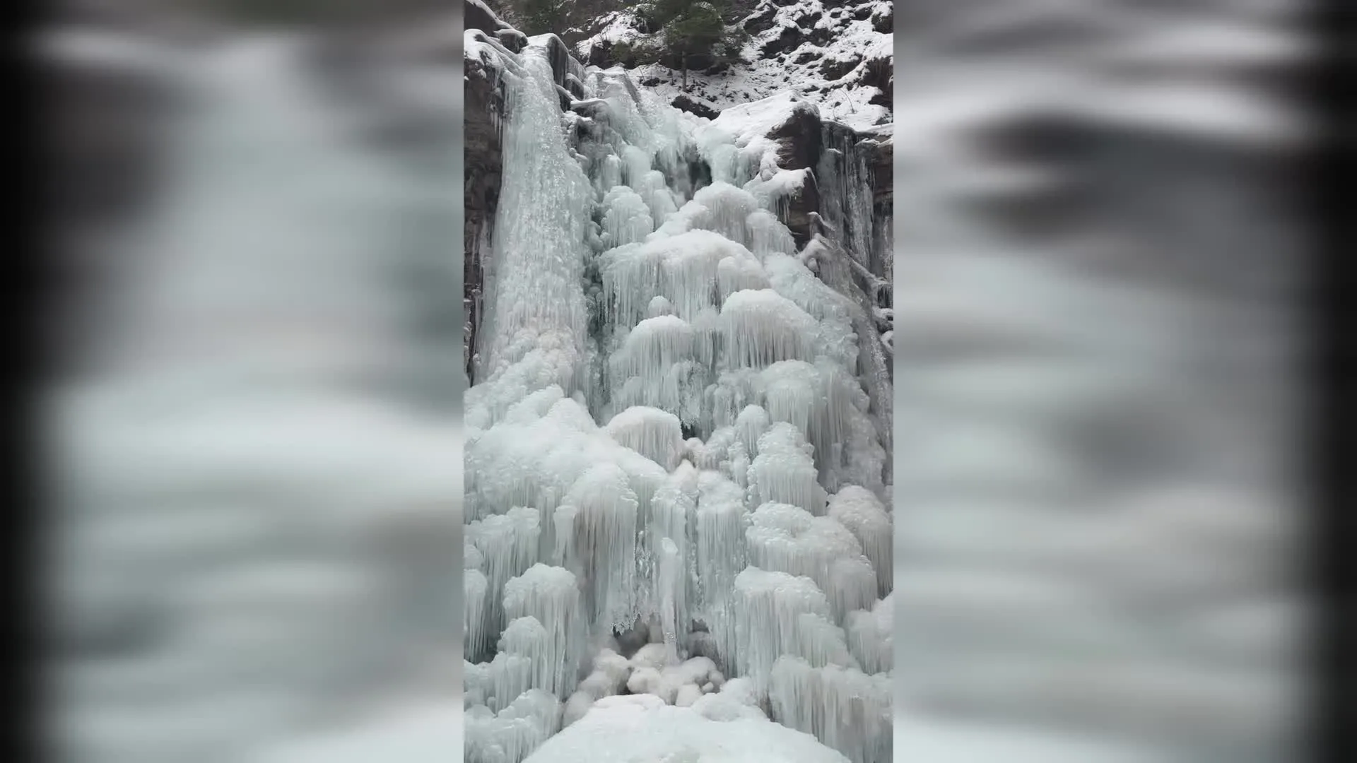 В Івано-Франківській області через тривалі морози повністю замерз Манявський водоспад, перетворившись на крижану стіну.