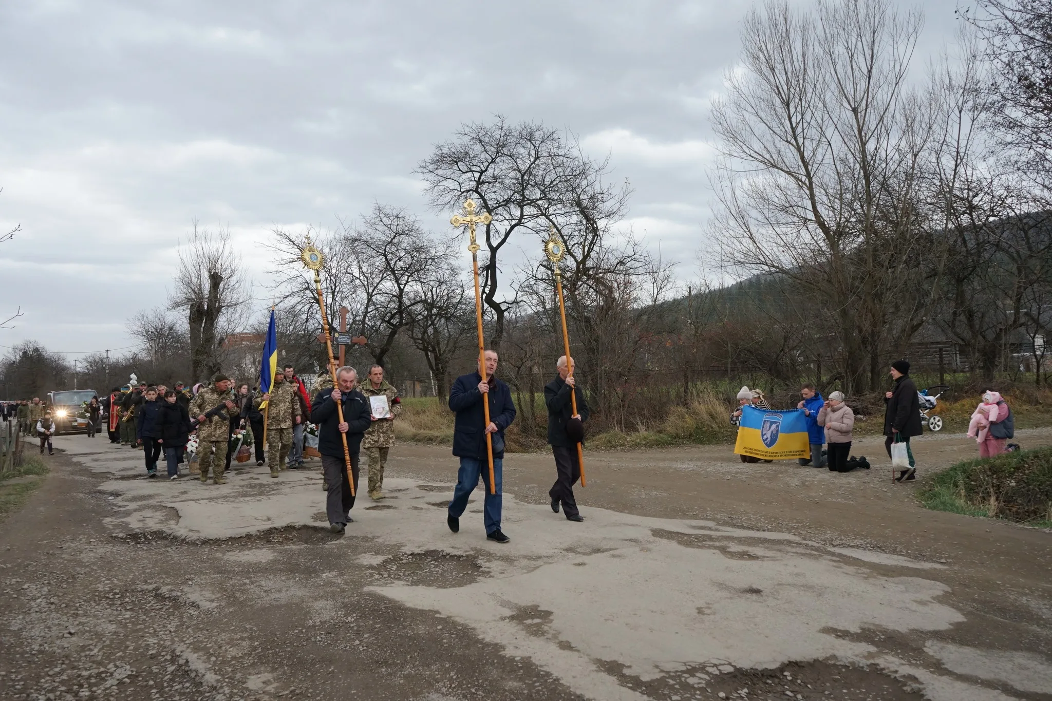 Зі сльозами на очах, з болем в серці прощалася скорботна родина, друзі, однокласники, односельчани та жителі навколишніх сіл, бойові побратими, священнослужителі з мужнім Захисником рідної землі Ярославом Накладюком, який віддав своє молоде життя за свободу та незалежність України.