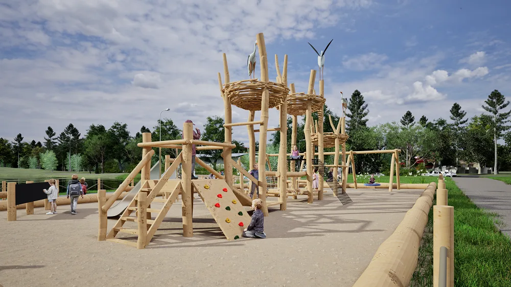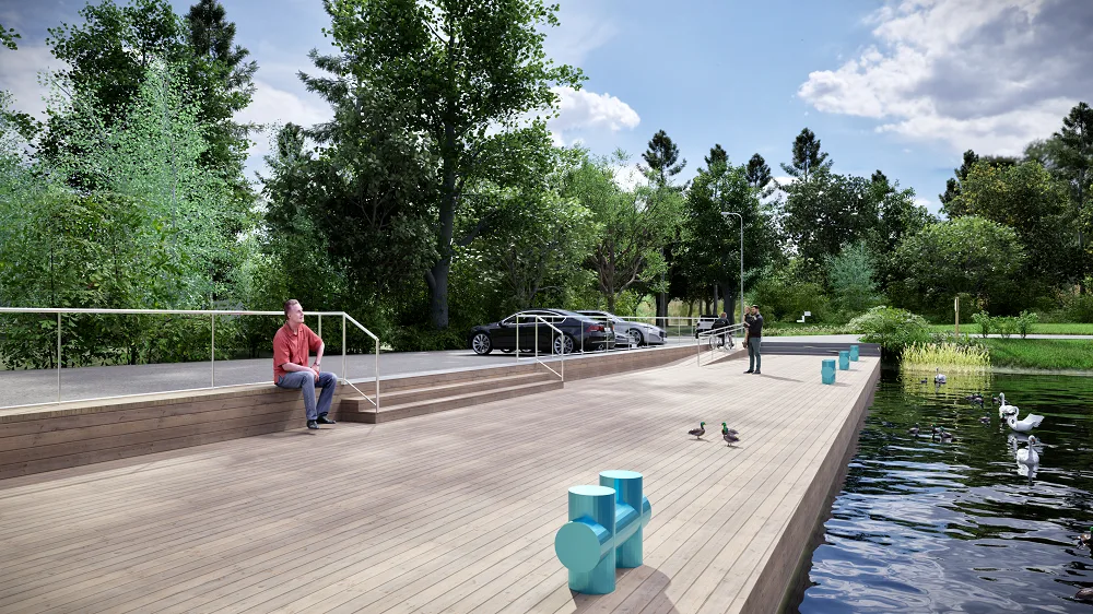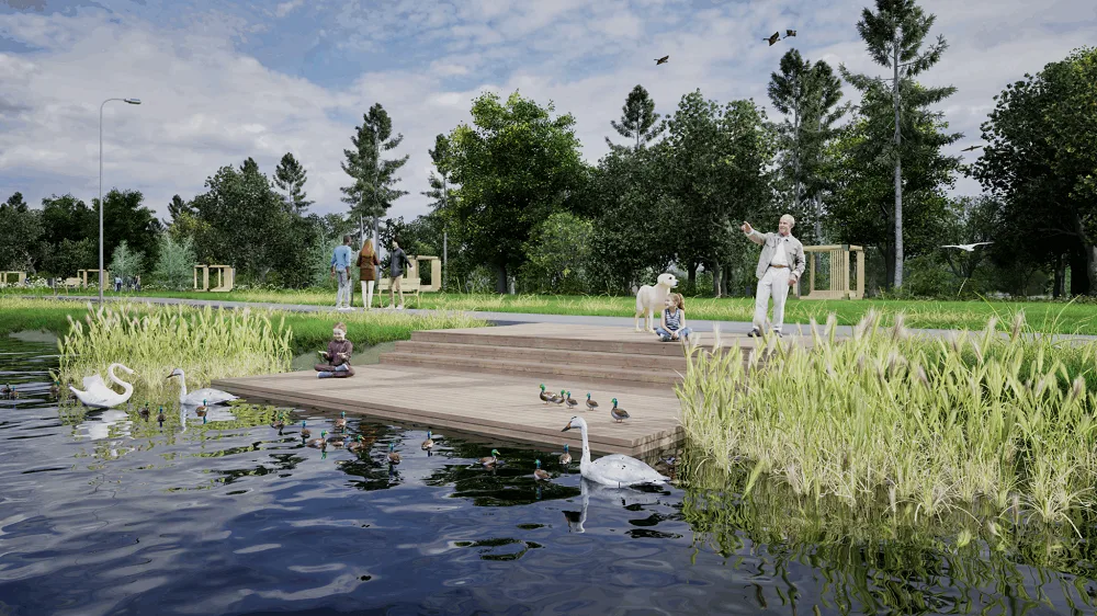 Також до кінця 2026 року тут мають звести дитячий майданчик, зону для пікніків та відпочинку з лавками, навісами, велопарковками, а також вуличний спорткомплекс з інклюзивними елементами, годівниці для птахів тощо.