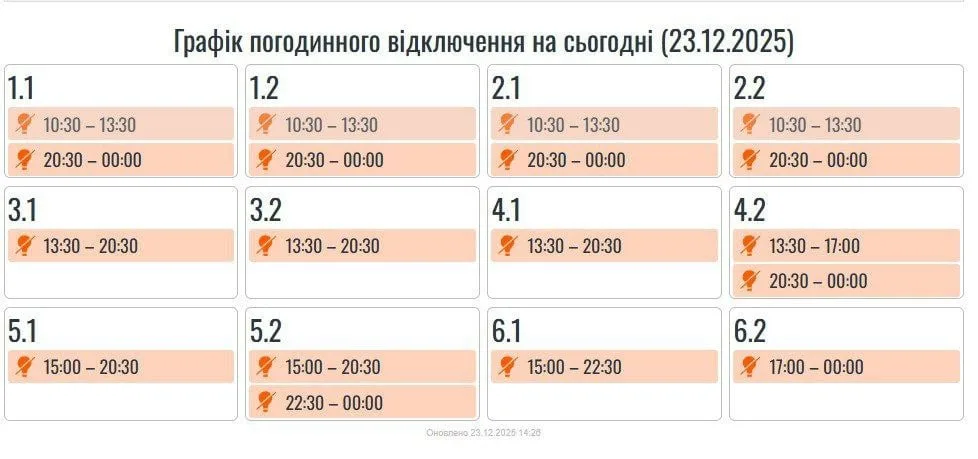 На Прикарпатті внесли зміни в графіки вимкнень (23.12.2025).