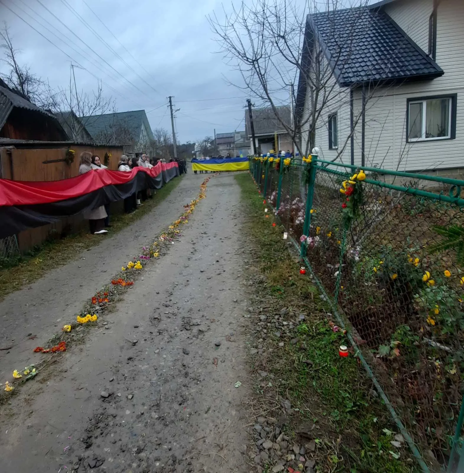 До рідної домівки, вистеленої квітами і лампадками , розпістерши прапори зійшлись односельчани , щоб засвідчити вдячність за мужність, самопожертву і захист, а також розділити з рідними Володимира біль втрати.