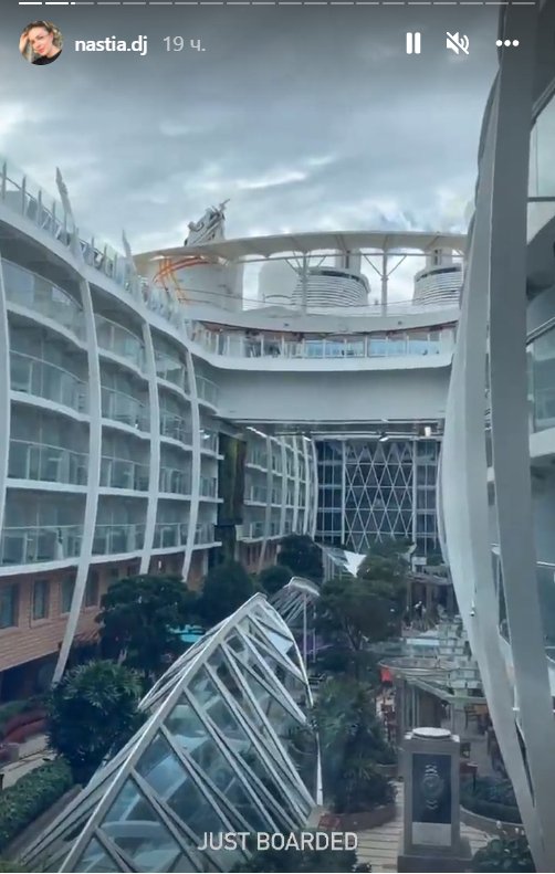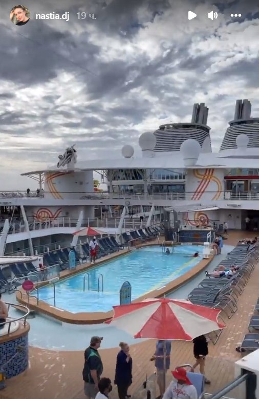 “Wе are on the ship (з англ. “Ми на кораблі”. – Gazeta.ua)”, – розповіла Тополська, відома як Dj Nastia. Показала, як виглядає номер на мегалайнері, басейн, теніс, баскетбольний майданчик, казино.