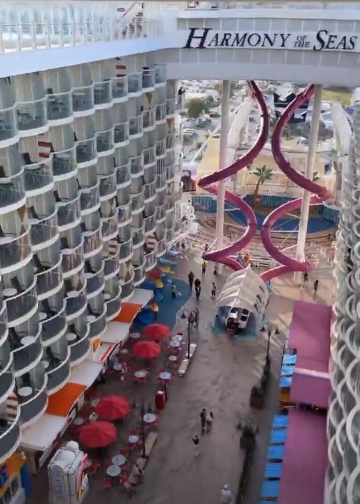 Лайнер Harmony of the Seas важить 120 тис. тонн, висота – 70 м, довжина – 362 м. Судно має 2744 пасажирських кают. Максимальна кількість людей на борту складає 6 360 пасажирів та 2 400 осіб команди судна.