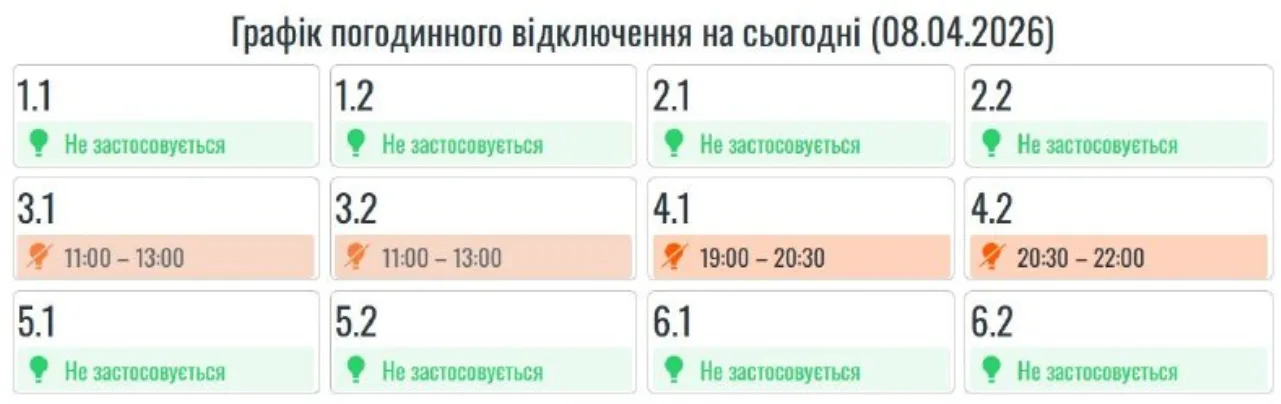 Оновлення в графіках погодинних вимкнень на сьогодні, 8 квітня.