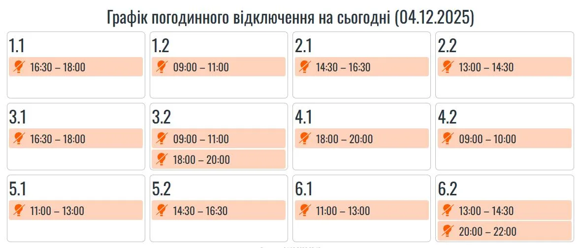 Оновили графік погодинних вимкнень на четвер, 4 грудня, в Івано-Франківській області.