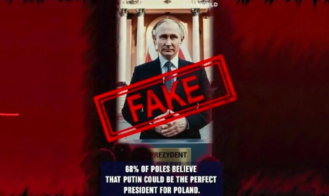 «Оце смілива заявка!» – мабуть такою логікою послуговувалися в запорєбріковій ботофермі, коли вигадали цей фейк. Перед президентськими виборами в Польщі у проросійських Telegram-каналах «Медведь», «Шкварка 2.0» та інших з’явилося відео з логотипом польського телеканалу TVP World. У ролику стверджувалося, що згідно з опитуваннями, більшість поляків розчаровані в Україні та вважають Путіна «найкращим лідером». Відео створили за допомогою ШІ, щоб деморалізувати українців. Мовляв, навіть там, у Польщі, розумні люди ніби можуть обрати ворожу сторону.