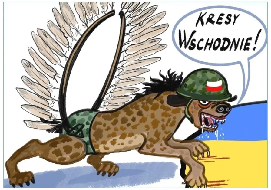Фразу про «гієну Європи» російські пропагандисти приписують Вінстону Черчіллю, який нібито у своїх «Військових мемуарах» використав її стосовно Польщі після подій 1938 року. Тоді Польща взяла участь у розділі Чехословаччини, анексувавши Тешинську область. Насправді слова Черчіля спотворили. Але для російської пропаганди – це «золота жила». Російські медіа та мережа Telegram-каналів («Резидент», «Легитимный»), які мімікрують під українські, просувають тезу, що «гієна повернулася». Нібито Польща допомагає Україні не з солідарності, а як гієна чекає, поки Україна ослабне, щоб «відгризти» західні області і хоче «повернути свої колишні території» – Східні Креси. Такий наратив полюбляє голова російської розвідки Сергій Наришкін. Також Дмитро Мєдвєдєв неодноразово називав Польшу нахабною гієною, яка «дограється» до четвертого розділу своїх територій.