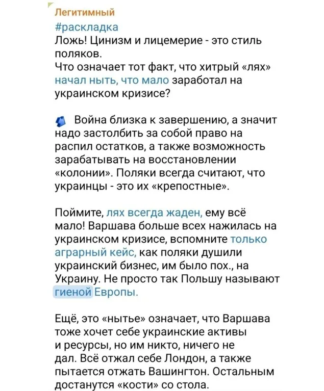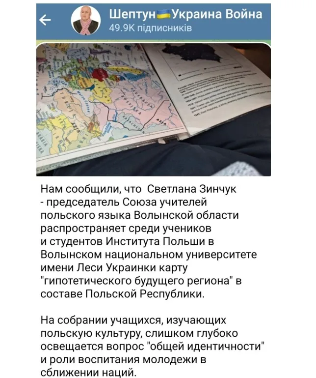 скріншот одного з телеграм-каналів поширення фейків про передачу Волині Польщі