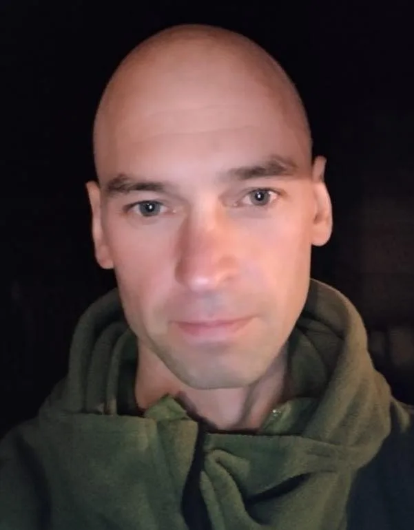 Чоловік у зеленій толстовці дивиться в камеру
