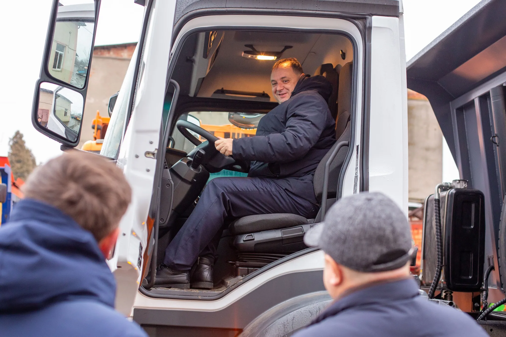 «Зручність звичайно покращилась, тому що машина нова. Це не порівняти з якимось ЗІЛом чи КАМАЗом. Мерседес – нова техніка – це є нова техніка завжди. Тестувати на дороги ми ще не виїжджали на ній. Але пробували – все працює, начальство задоволене і ми, як водії, також. Це є повний солерозкидач, розсипає тільки сіль. Ми працюємо в три зміни. На кожну зміну є шофер, працюємо з 8 до 8, і виїжджаємо за необхідності коли починає сніг падати чи мінусова температура».