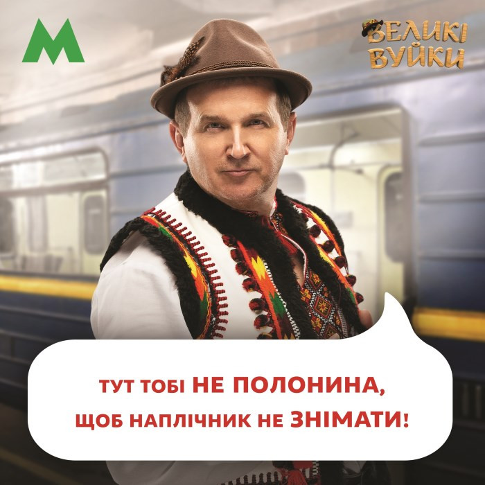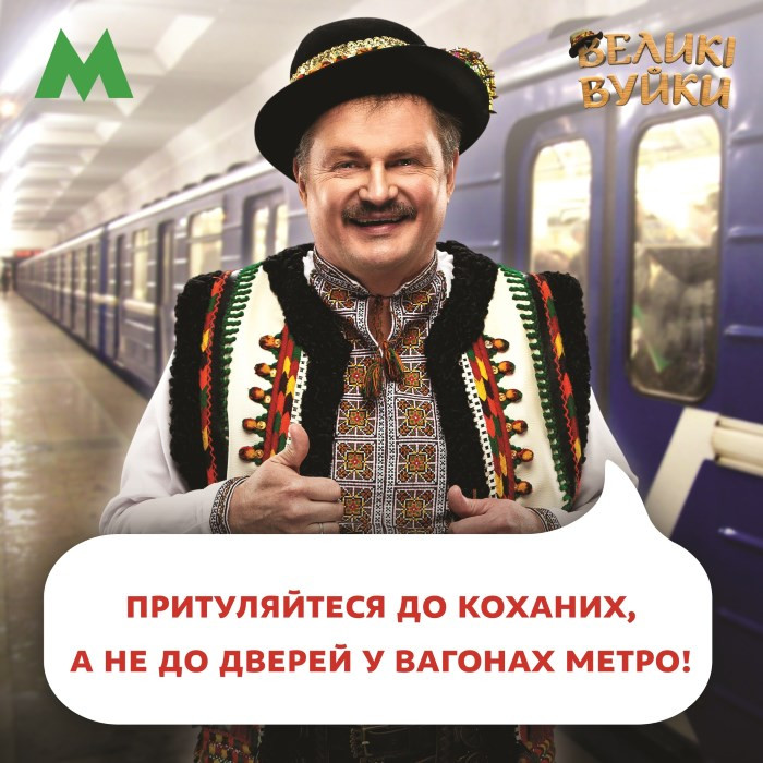 «Притуляйтеся до коханих, а не до дверей у вагонах метро», «Тут тобі не полонина, щоб наплічник не знімати», «Гуцульські вчені дослідили: хто платить карткою в метро, встигає зустріти на станції Тома Круза», — звертаються до киян та гостей міста улюблені гуцули.
