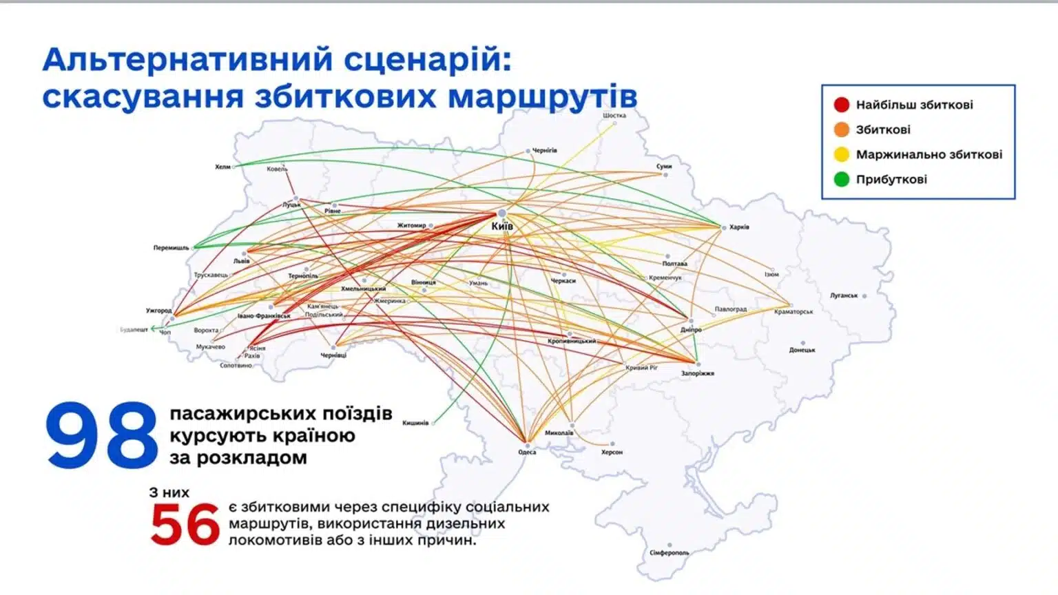 У приміському сполученні покривається менше 10% видатків. За відсутності державного фінансування, за словами керівника УЗ, довелося б скасувати понад 500 рейсів.