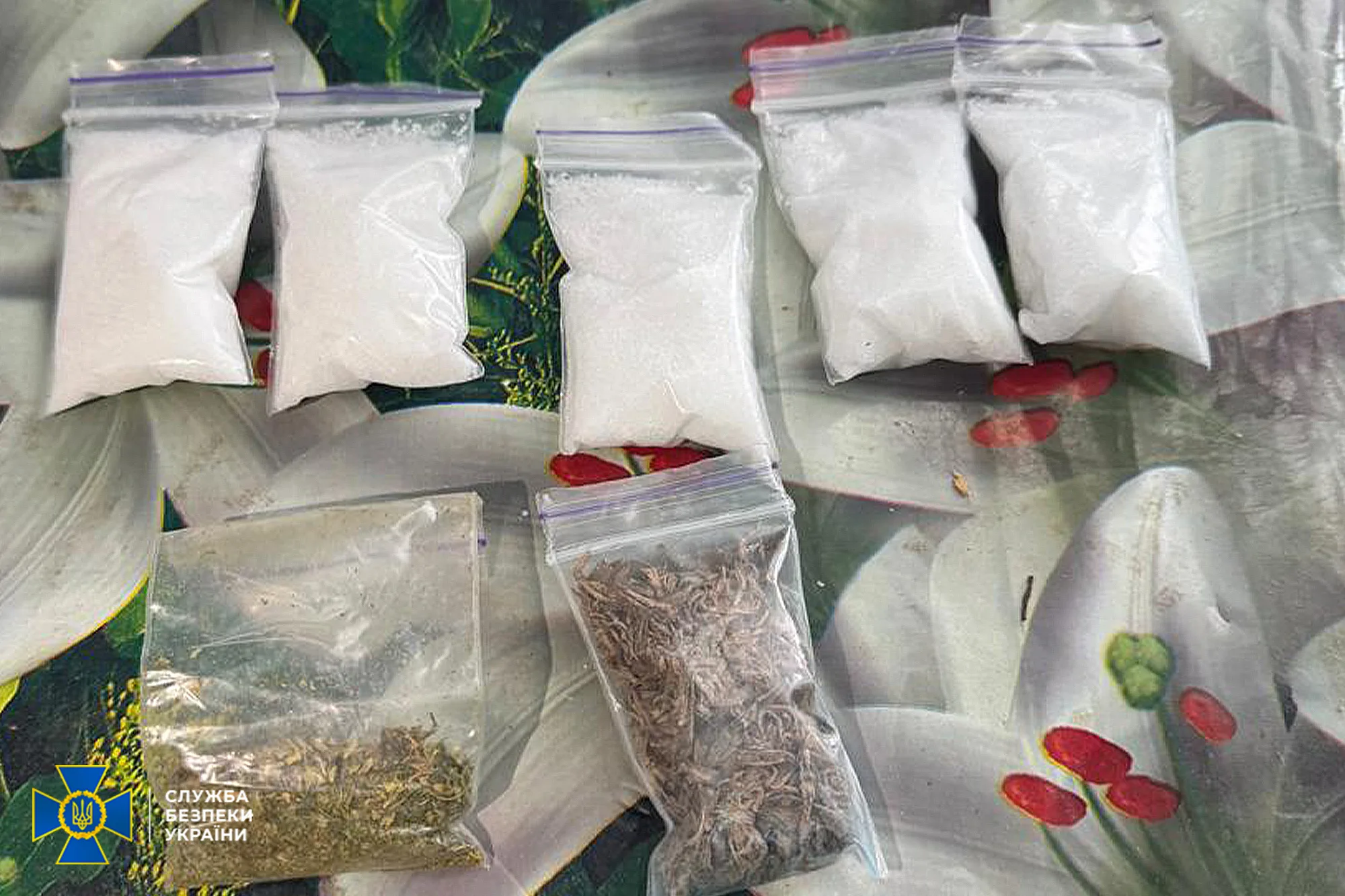 - близько 850 грамів амфетаміну, таблетки MDMA, псилоцибінові таблетки, 13 кг канабісу;