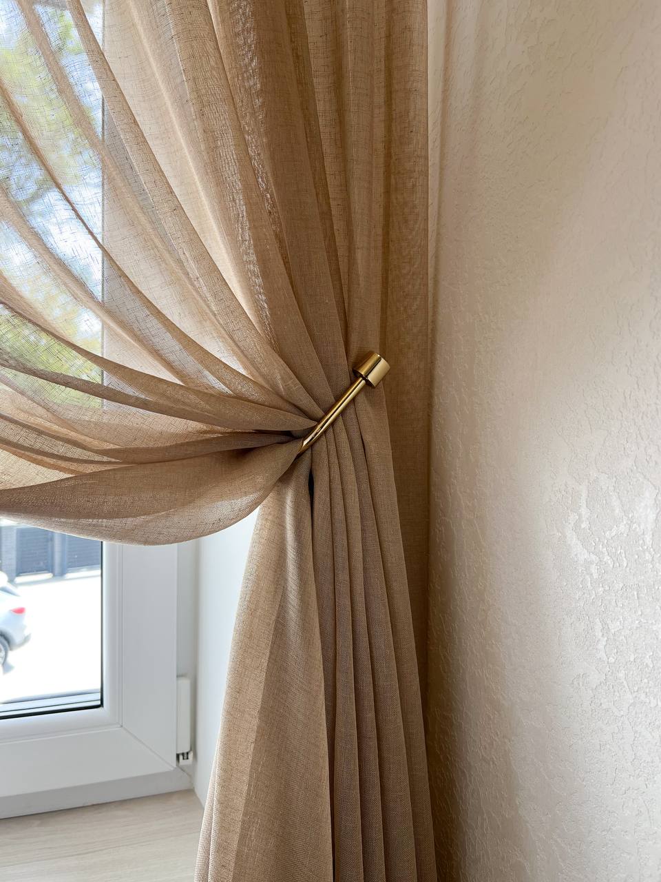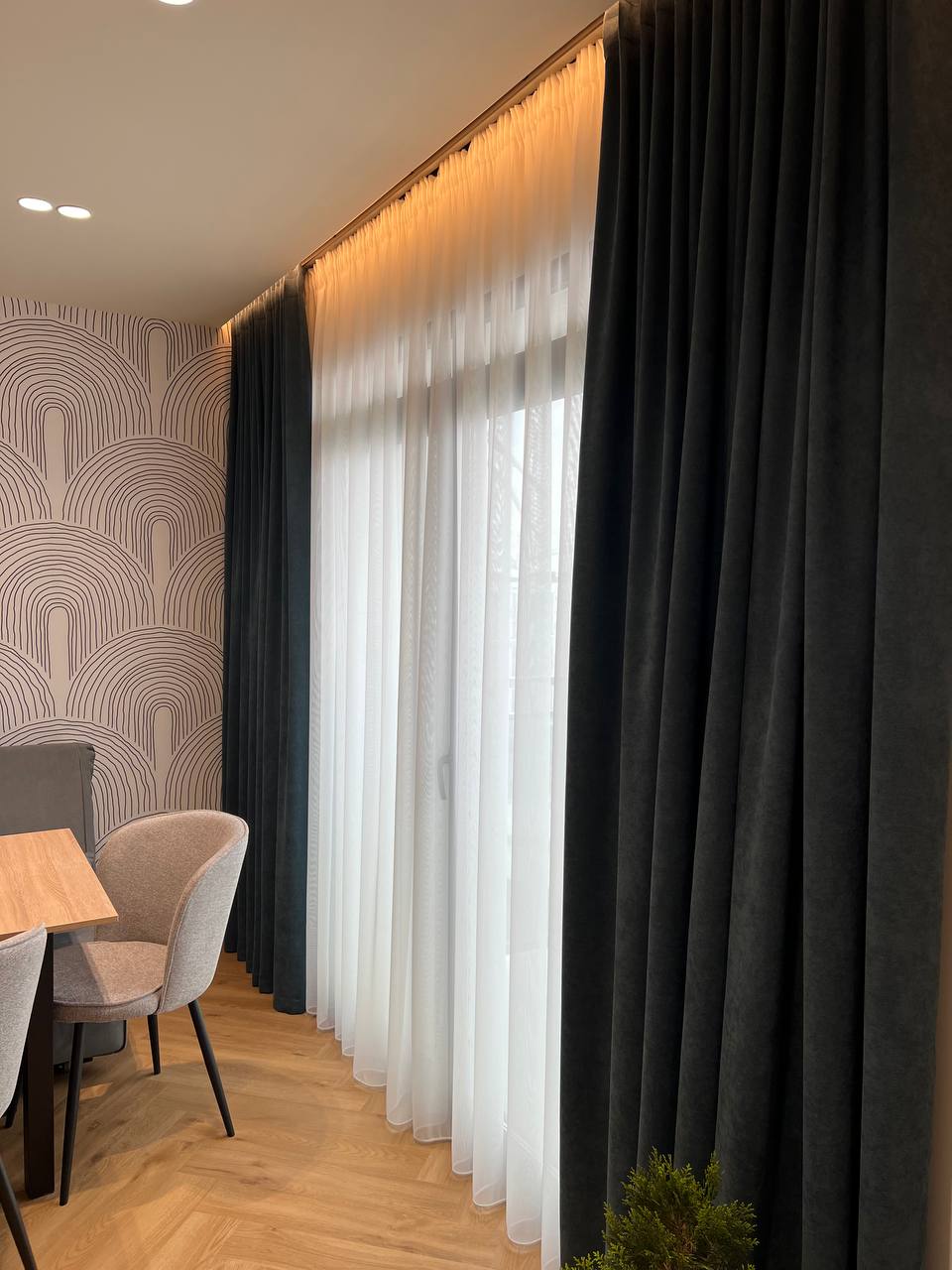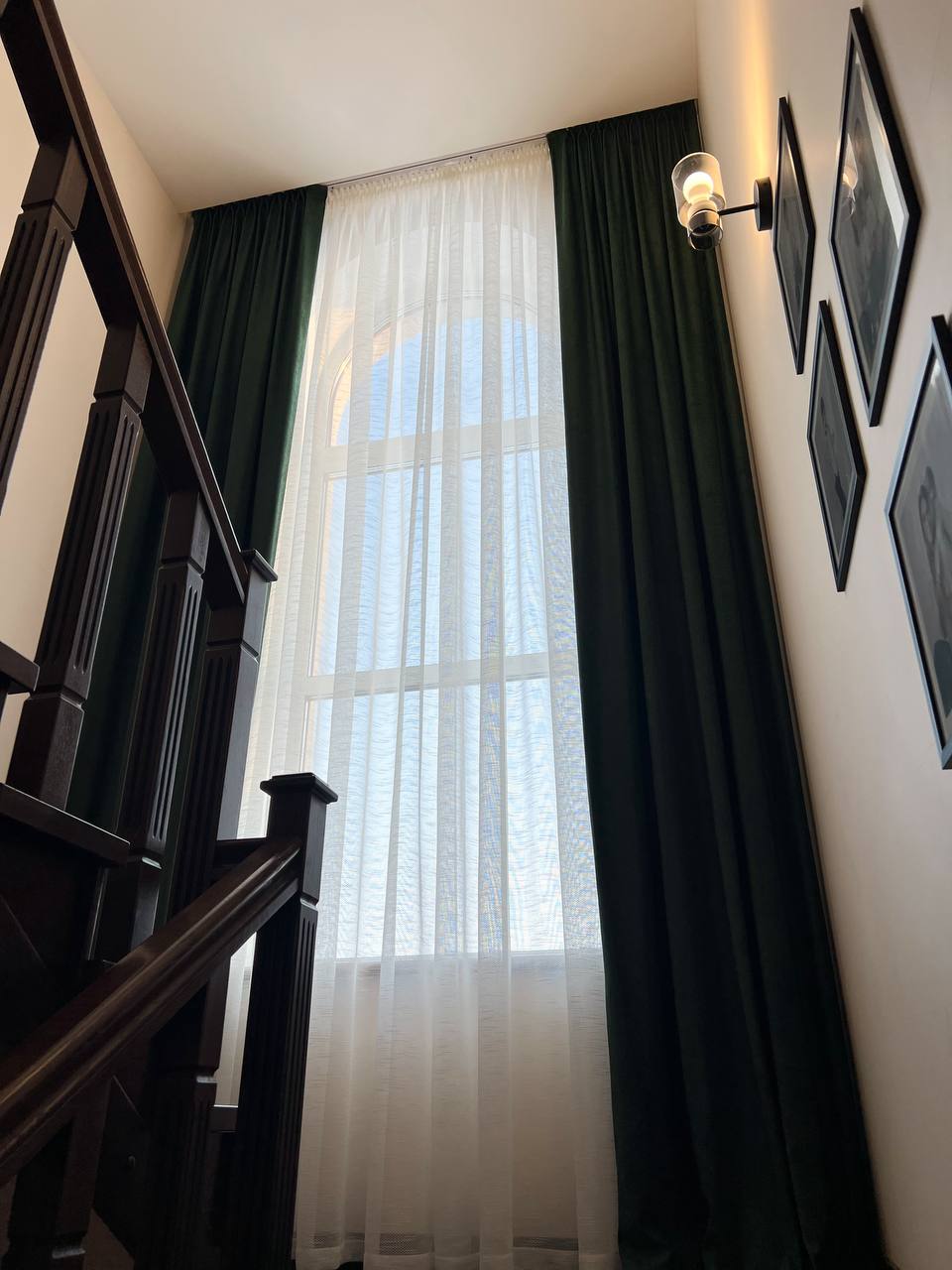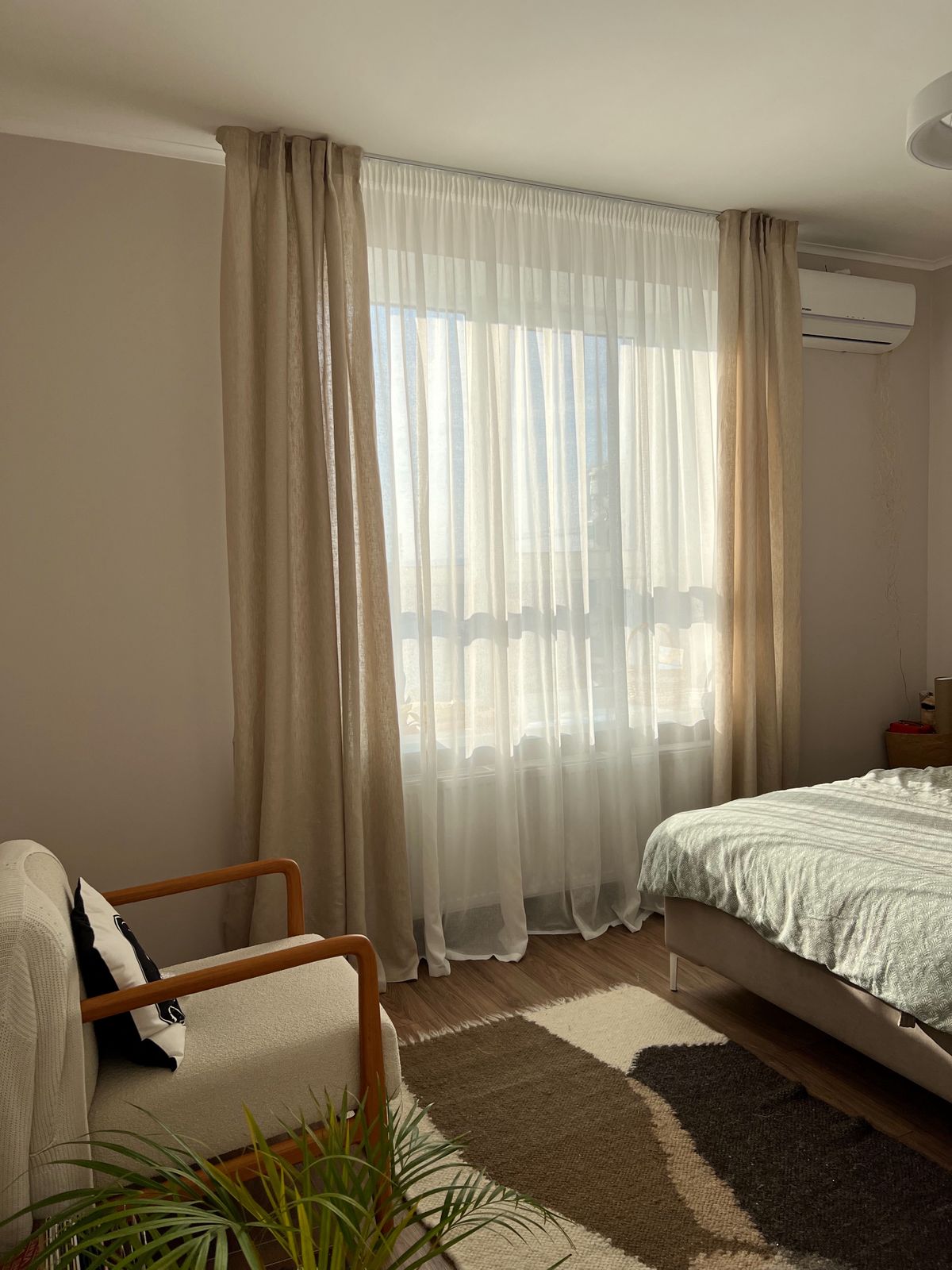 «Для кухонь ми часто пропонуємо тюлі з виразною фактурою та натуральним складом, які мають самодостатній вигляд на вікні. Для спалень обираємо комбіновані рішення — поєднання легких тюлів із щільними шторами на підкладці, які створюють ідеальні умови для відпочинку», — коментує Романа.