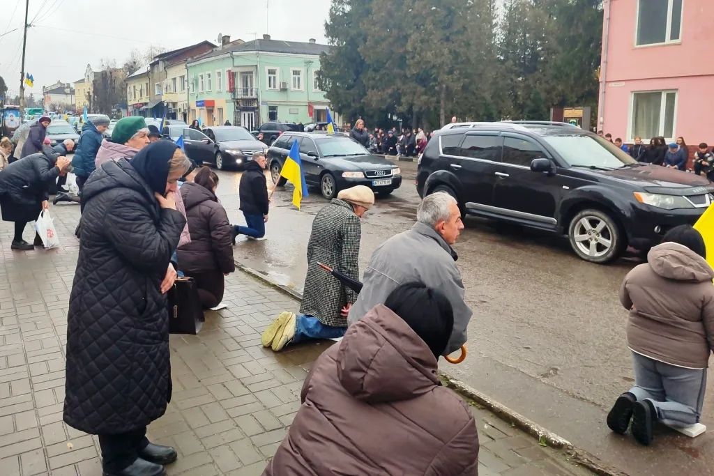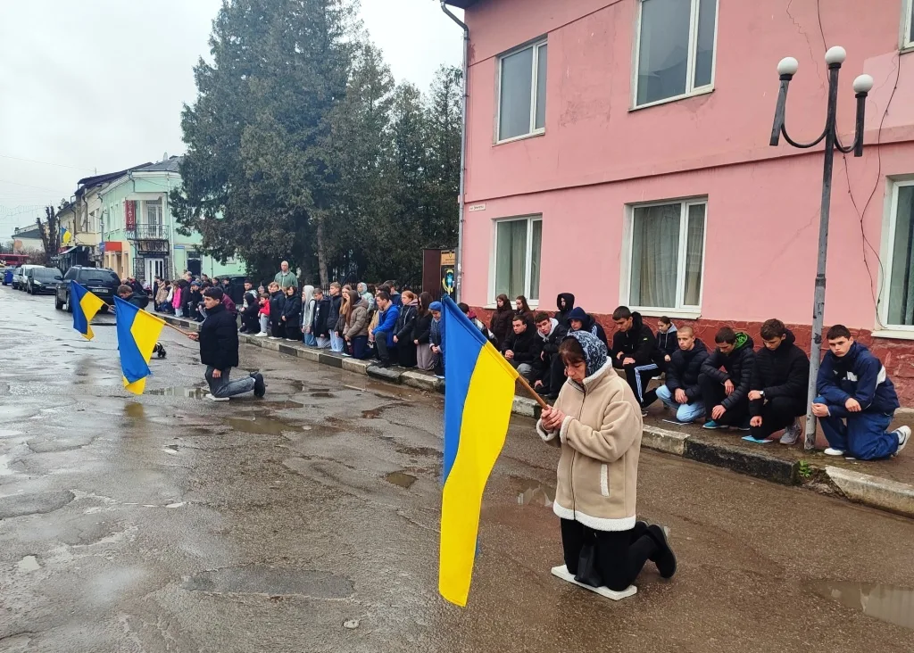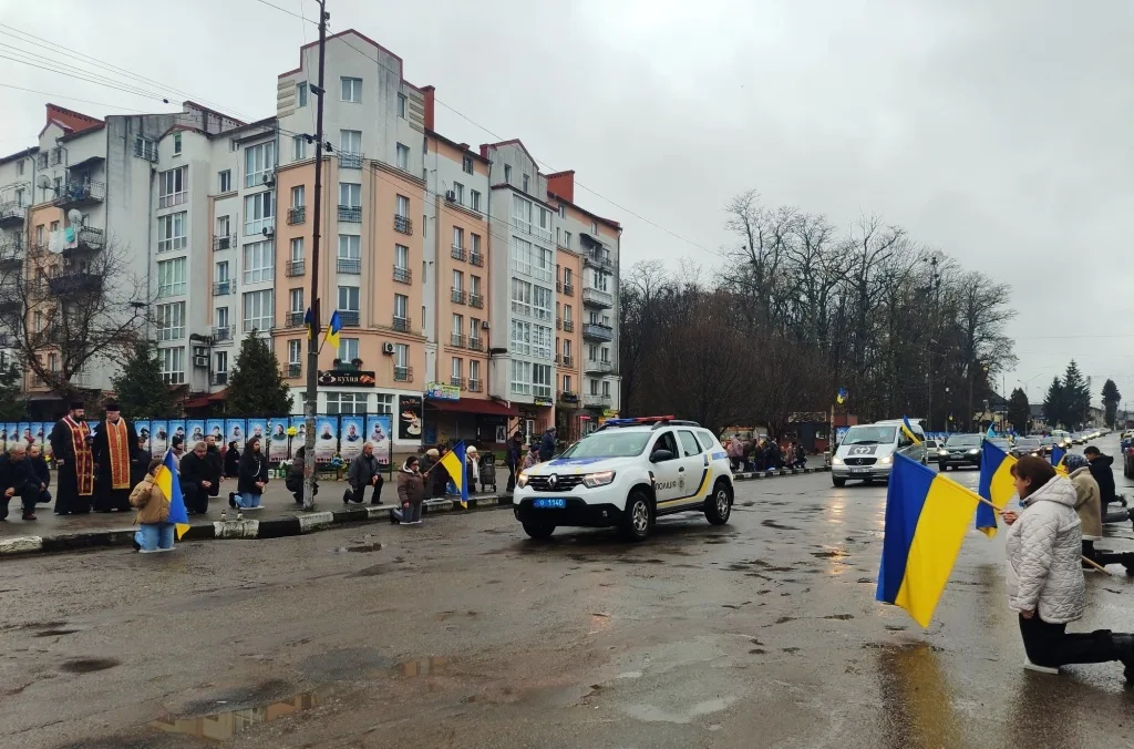 Місцеві мешканці створили живий коридор та, під бій дзвонів і пісню «Пливе кача по Тисині…», на колінах зустріли полеглого земляка. Спільно із деканами Тлумацькими о. Павлом Дутчаком (УГКЦ) та о. Василем Стадником (ПЦУ) усі присутні помолилися за упокій душі загиблого Героя, йдеться у офіційному повідомлені.