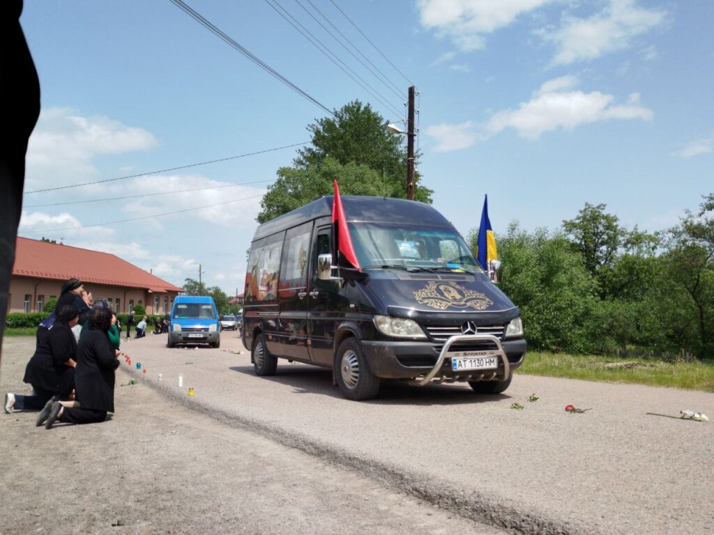 Вдячні земляки із Верхнього Струтина зустріли полеглого героя із квітами та прапорами та стоячи на колінах