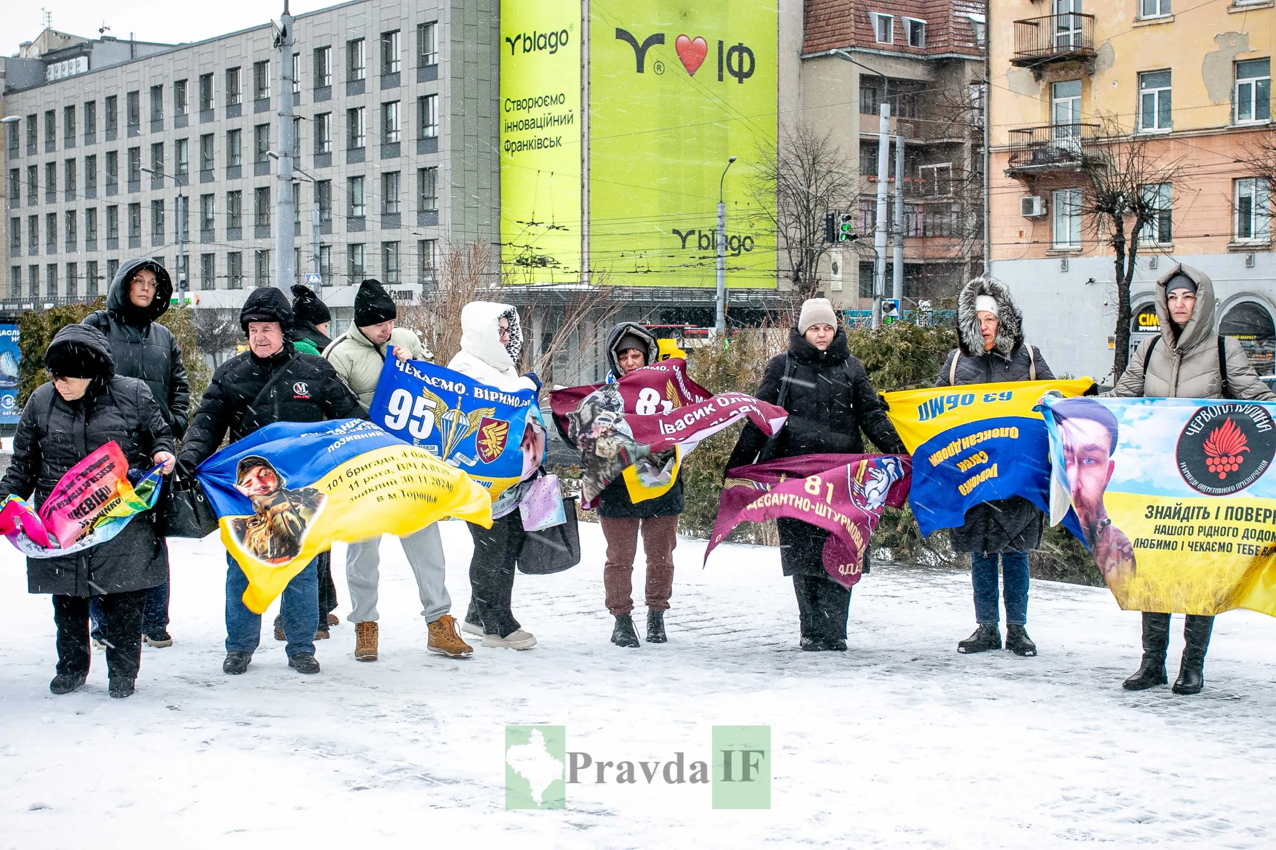 Організаторами мирної акції стали родини безвісти зниклих та полонених за підтримки Франківського драмтеатру, пише Правда.іф.