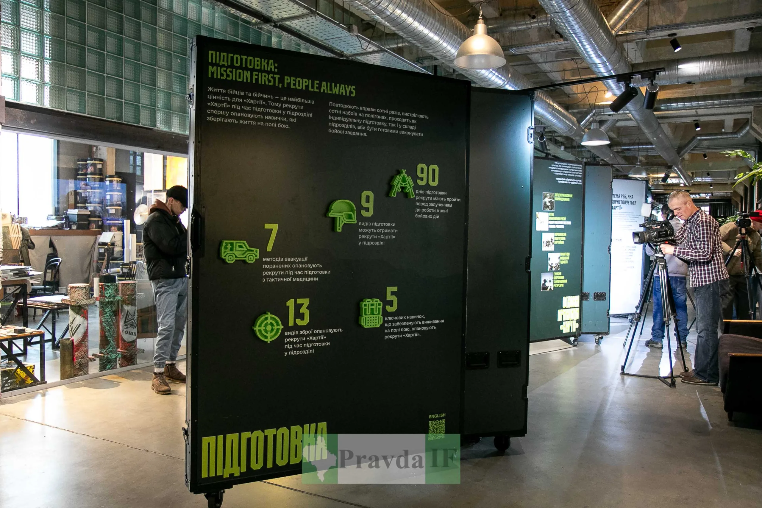 Як розповіла керівниця просвітницького простору «Хартія-Хаб» в Івано-Франківську Софія Піндус, головна мета виставки — показати військо через призму конкретних людей і стерти бар’єр між цивільними та військовими.