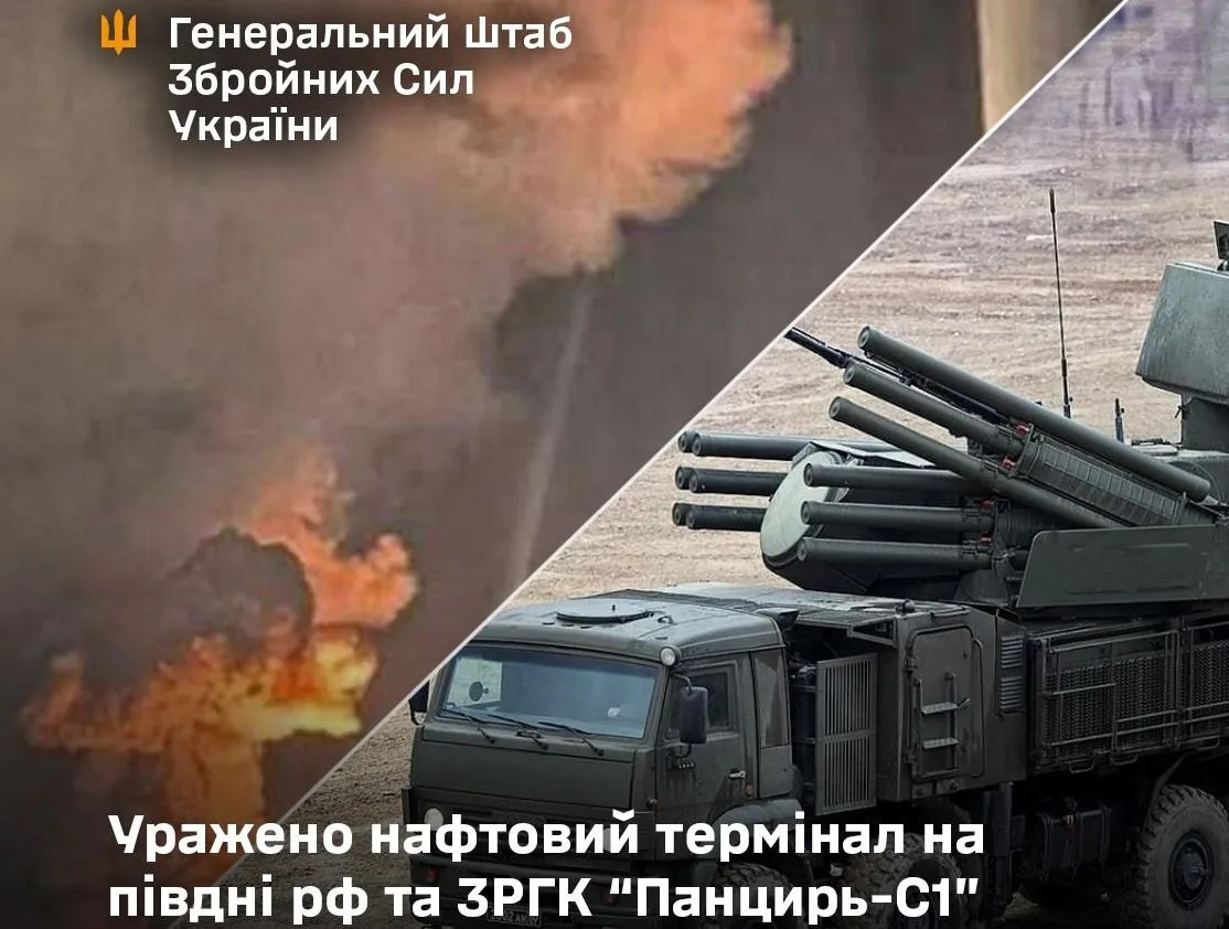 Зокрема, підтверджено ураження нафтового терміналу “Таманьнефтегаз” в районі селища Волна, (Краснодарський край, рф). На території об’єкту зафіксовано пожежу.