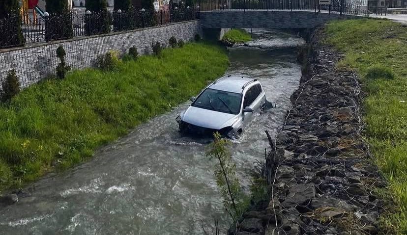 У Буковелі пʼяний водій заїхав автомобілем у річку. ФОТО. ВІДЕО