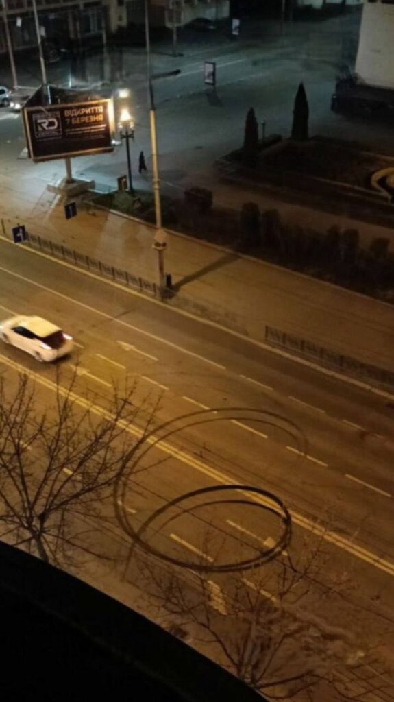 Після небезпечних маневрів на дорожньому покритті залишилися характерні сліди від шин.