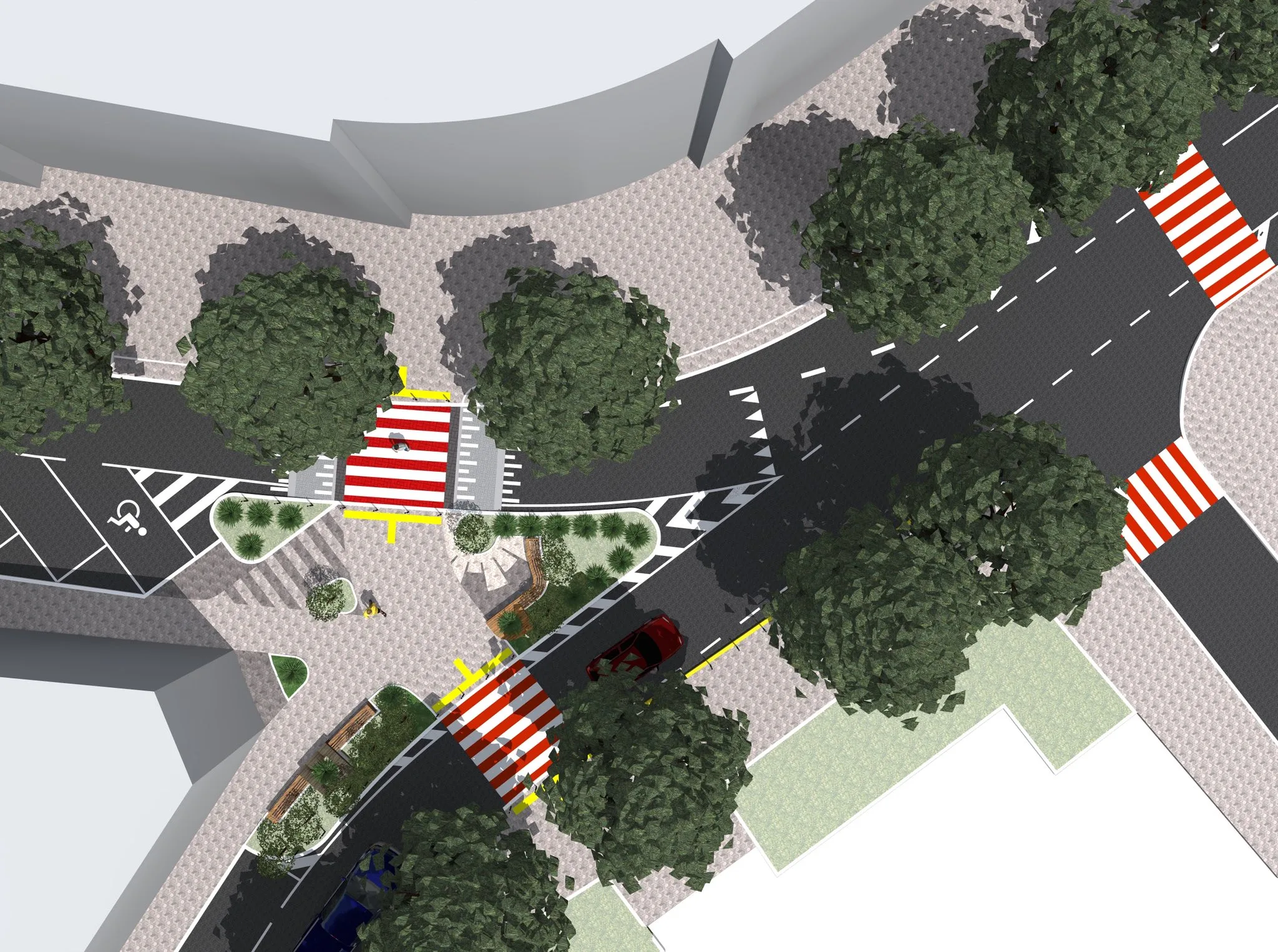 На перехресті вулиць Грушевського та Вагилевича передбачено облаштування так званої «антикишені» з елементами доступності. Проєкт також включає створення невеликого громадського простору з озелененням, деревами та місцями для відпочинку, пише Mykhailo Smushak.