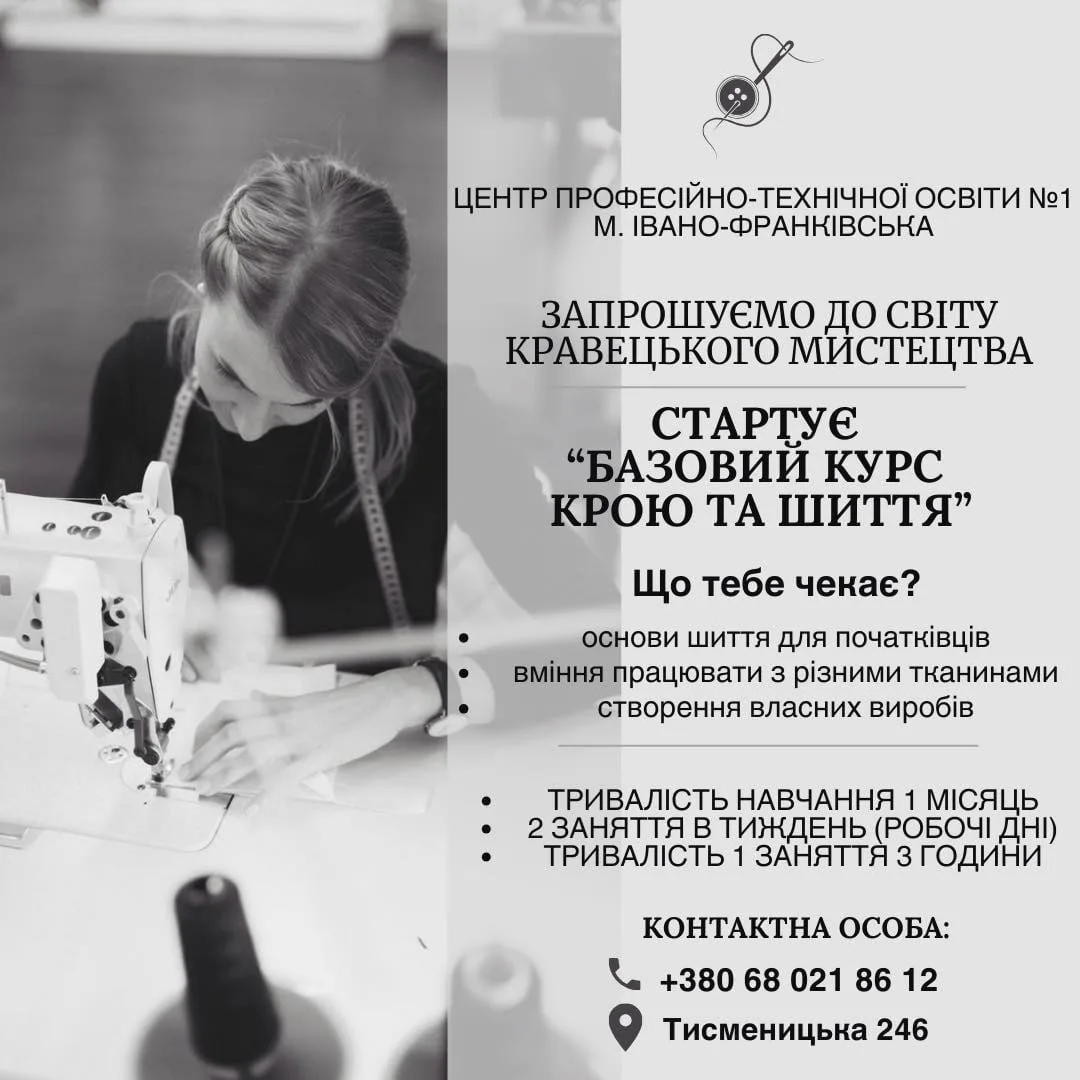 У Центрі професійно-технічної освіти №1 розпочався набір на навчальний курс «Крій та шиття».