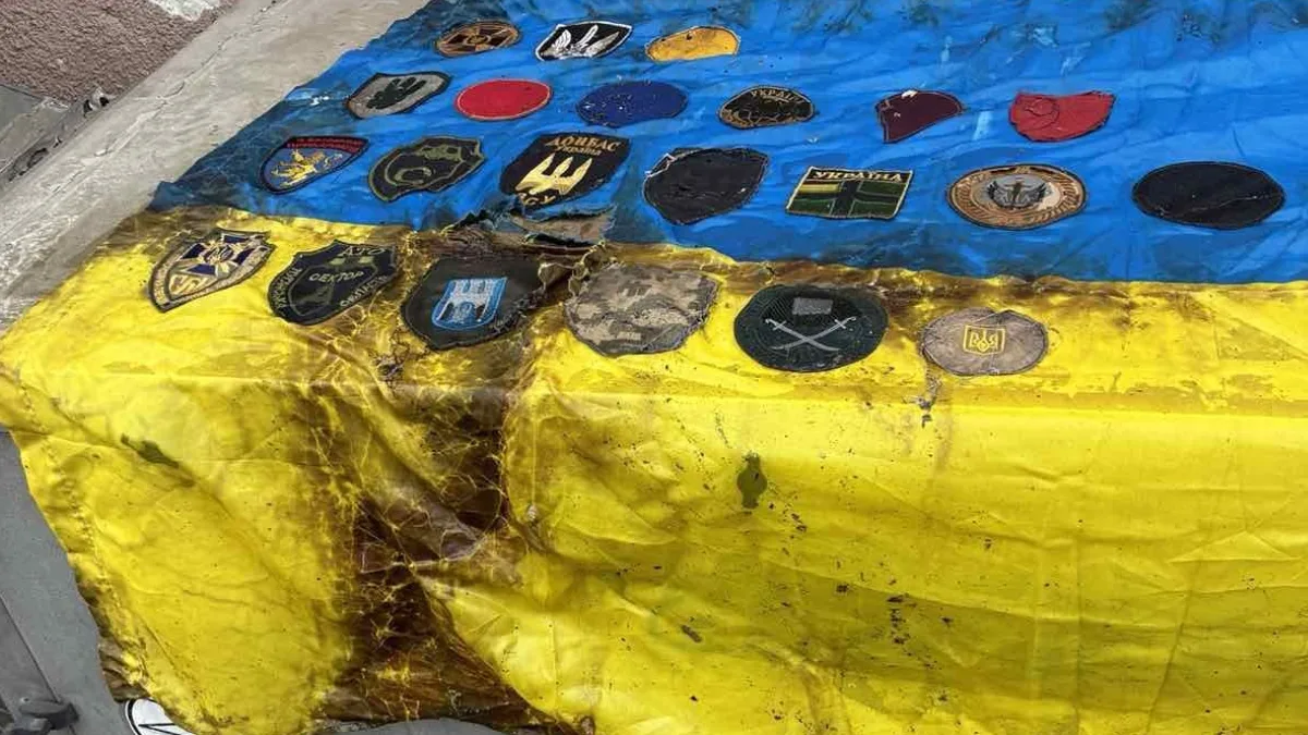 В Івано-Франківську працівники водоканалу виявили у каналізаційній мережі пошкоджений прапор України. На ньому є шеврони підрозділів.