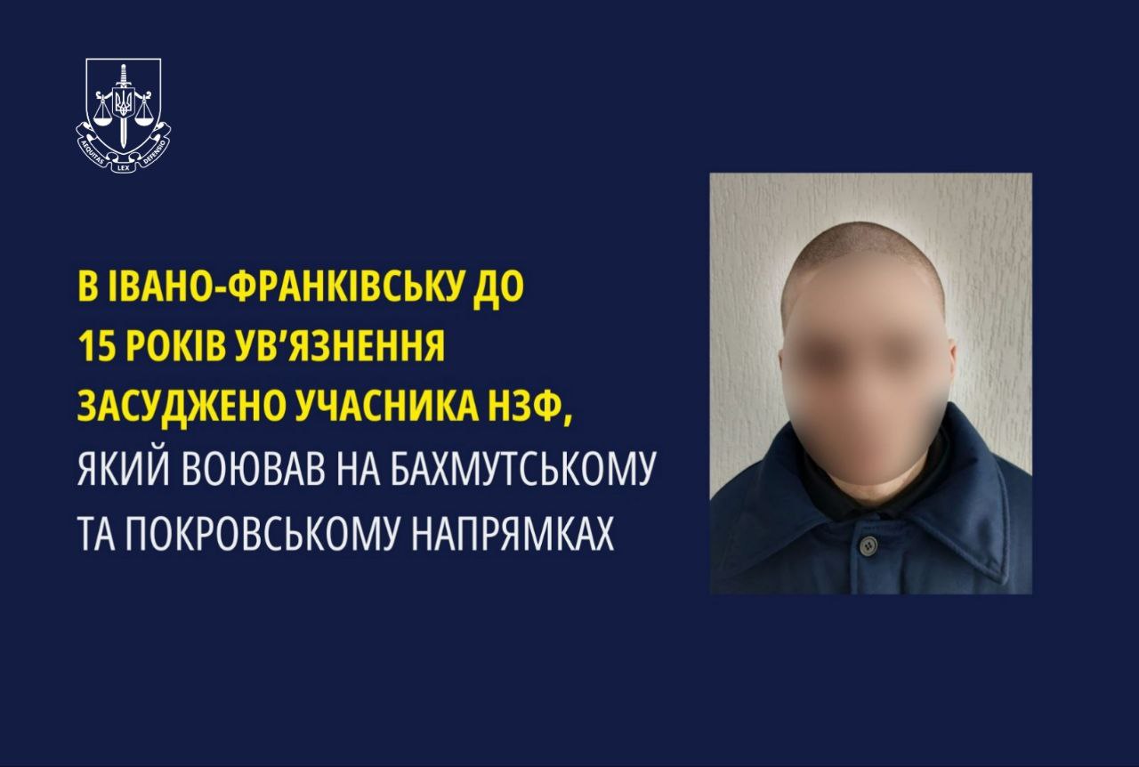 В Івано-Франківську до 15 років ув’язнення з конфіскацією майна засудили жителя Донеччини. Він добровільно перейшов на бік РФ й воював проти Збройних сил України на Бахмутському та Покровському напрямках. У березні 2023 року українські бійці взяли його у полон.