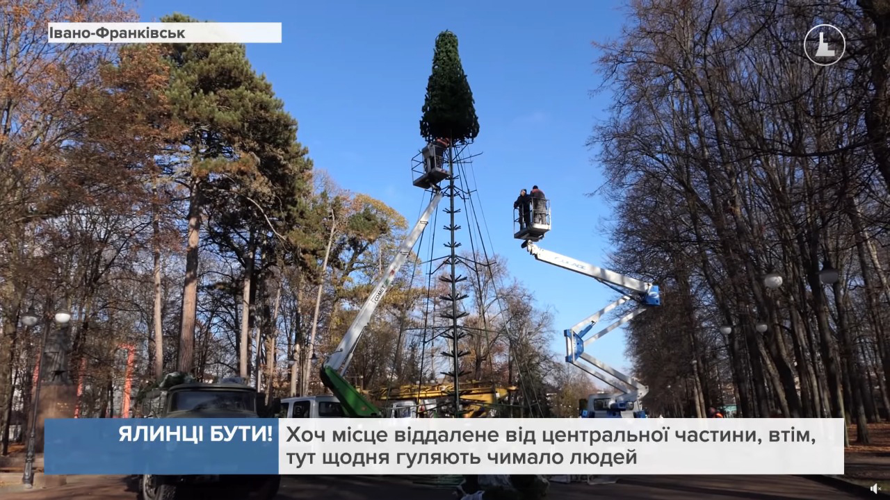 18-метрову ялинку почали монтувати у парку Тараса Шевченка в Івано-Франківську