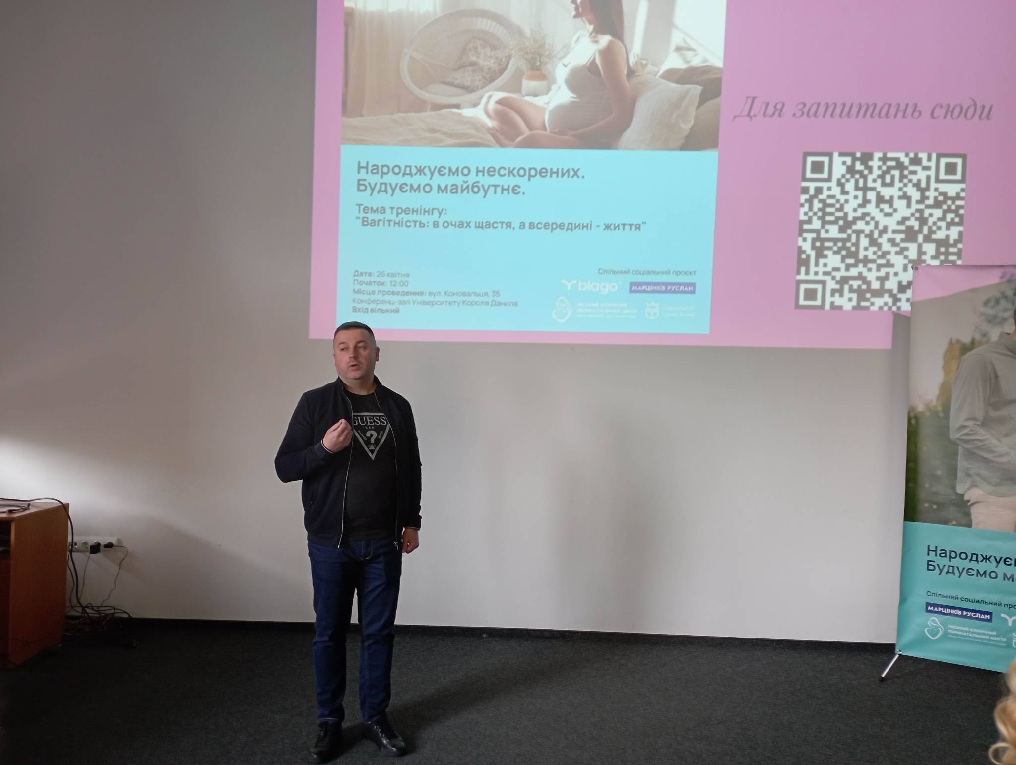 Під час тренінгу спікери розповідали про стиль життя під час вагітності, міфи та забобони, загрозливі стани для вагітної, УЗД, скринінги, а також про психологічну підтримку вагітних жінок.