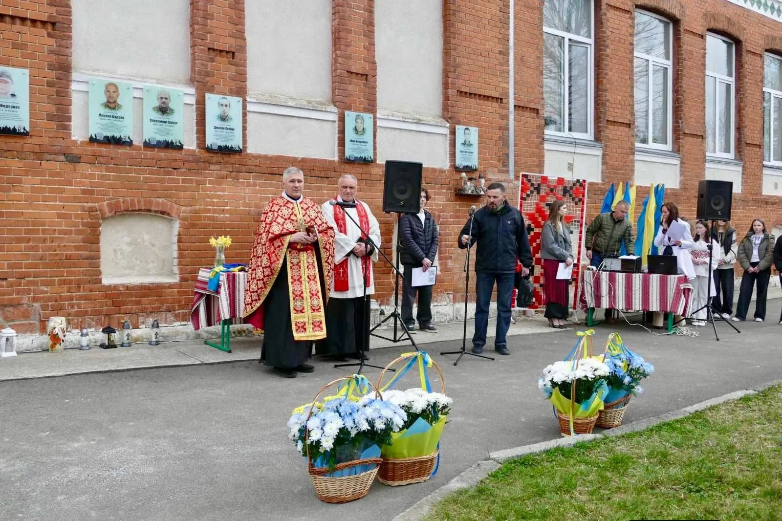 Чин освячення меморіальних дощок здійснили священники о. Ігор Пришляк та о. Роман Стадник. Під час заходу звучали щирі слова вдячності та пам’яті.