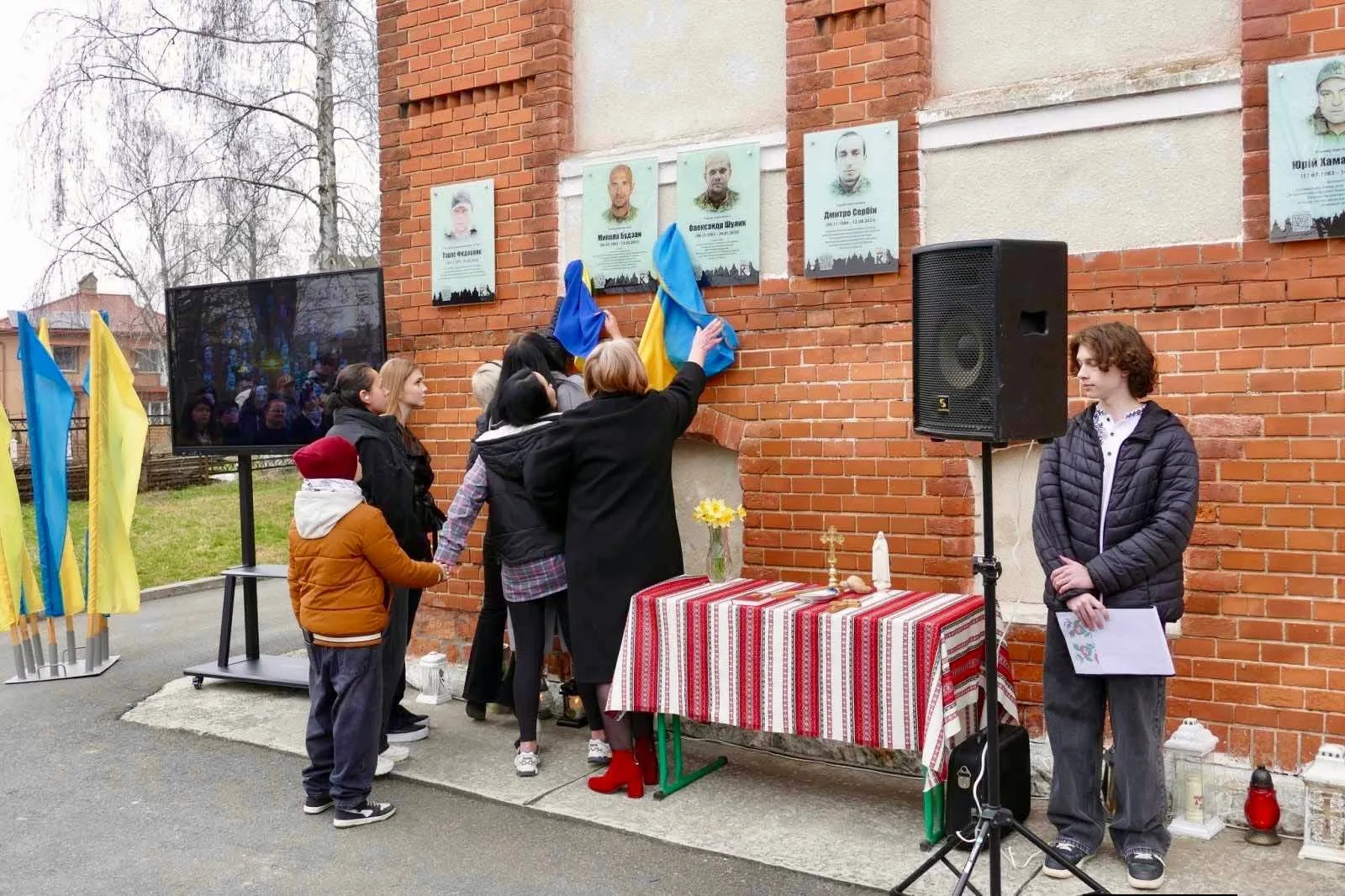 На фасаді ліцею №1 відкрили й освятили інтерактивні меморіальні дошки полеглим захисникам України, випускникам ліцею Олександрові Шулику та Миколі Будзану.