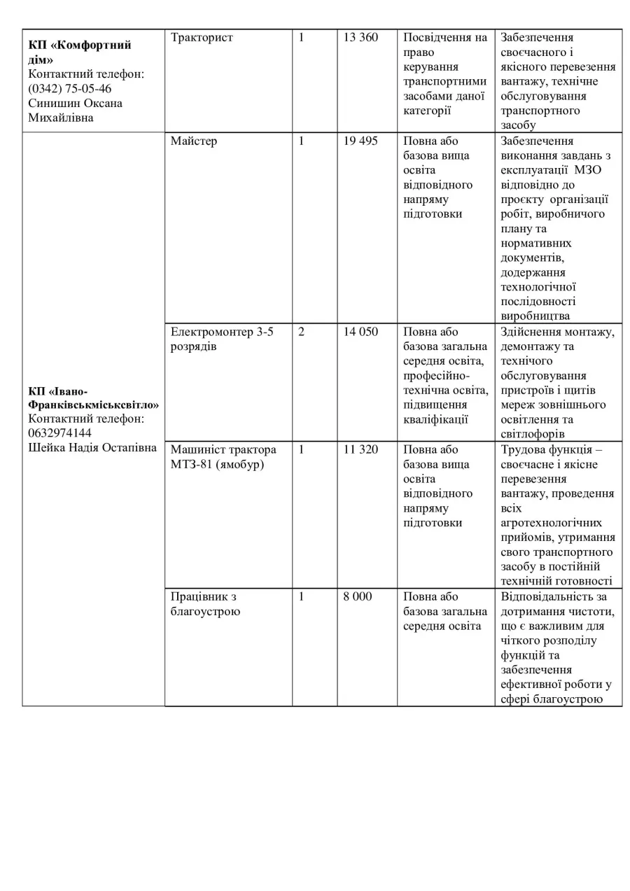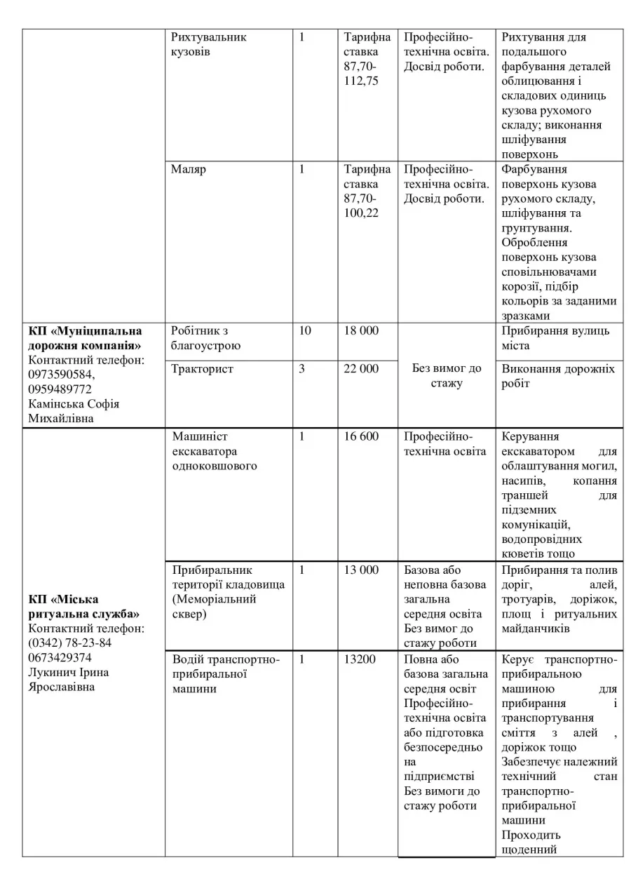 Міська влада Івано-Франківська оприлюднила перелік професій, яких потребують комунальні підприємства міста.