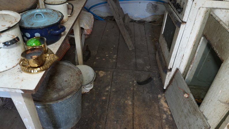 Подвір’я — некошене, на стінах хати — тріщини, на підлозі — червоні плями, у кімнатах — брудний посуд і меблі — такий вигляд має житло, яке Косівська міська рада запропонувала ветерану для тимчасового проживання.